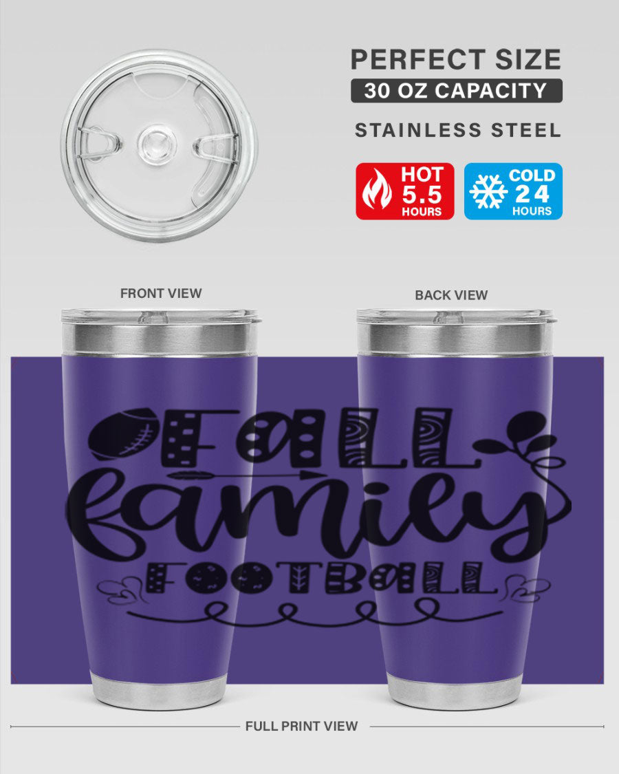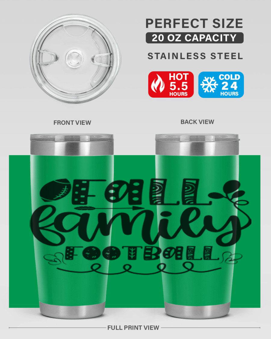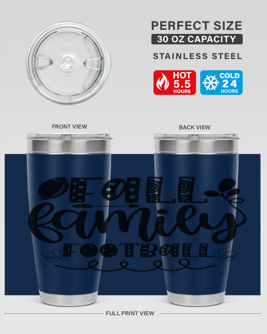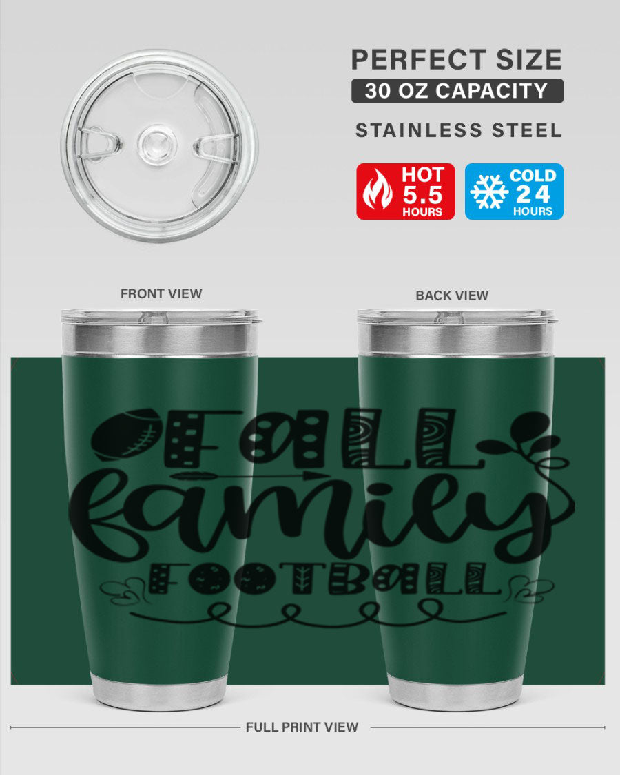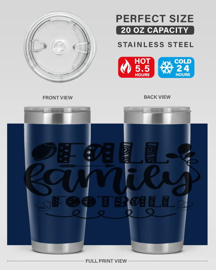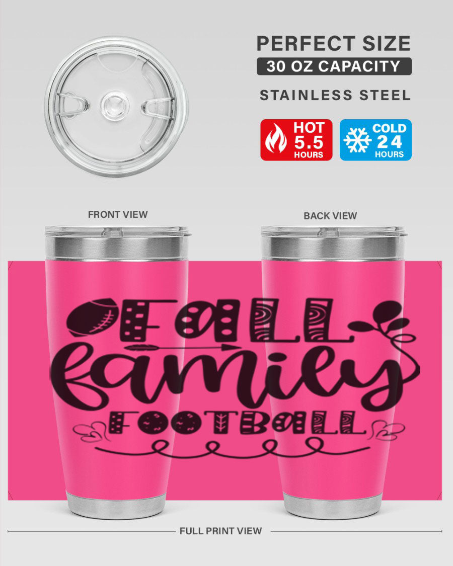 The Fall Family Football 99# Tumbler is the perfect companion for any football fan looking to enjoy their favorite beverages in style. This 20oz tumbler is designed with a double wall vacuum insulation, ensuring that your drinks stay hot for up to 5.5 hours and cold for an impressive 24 hours. Whether you're tailgating, watching the game at home, or just enjoying a day out, this tumbler is built to keep your drinks at the perfect temperature.