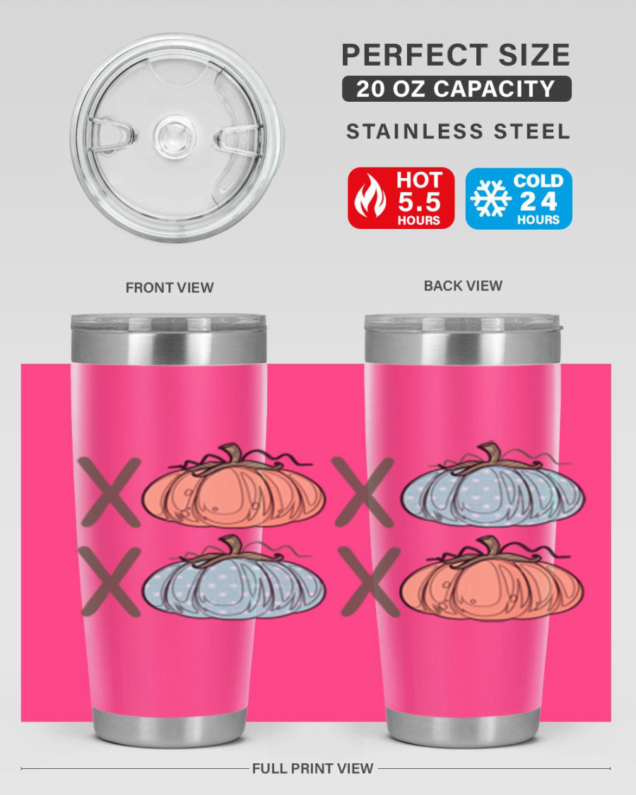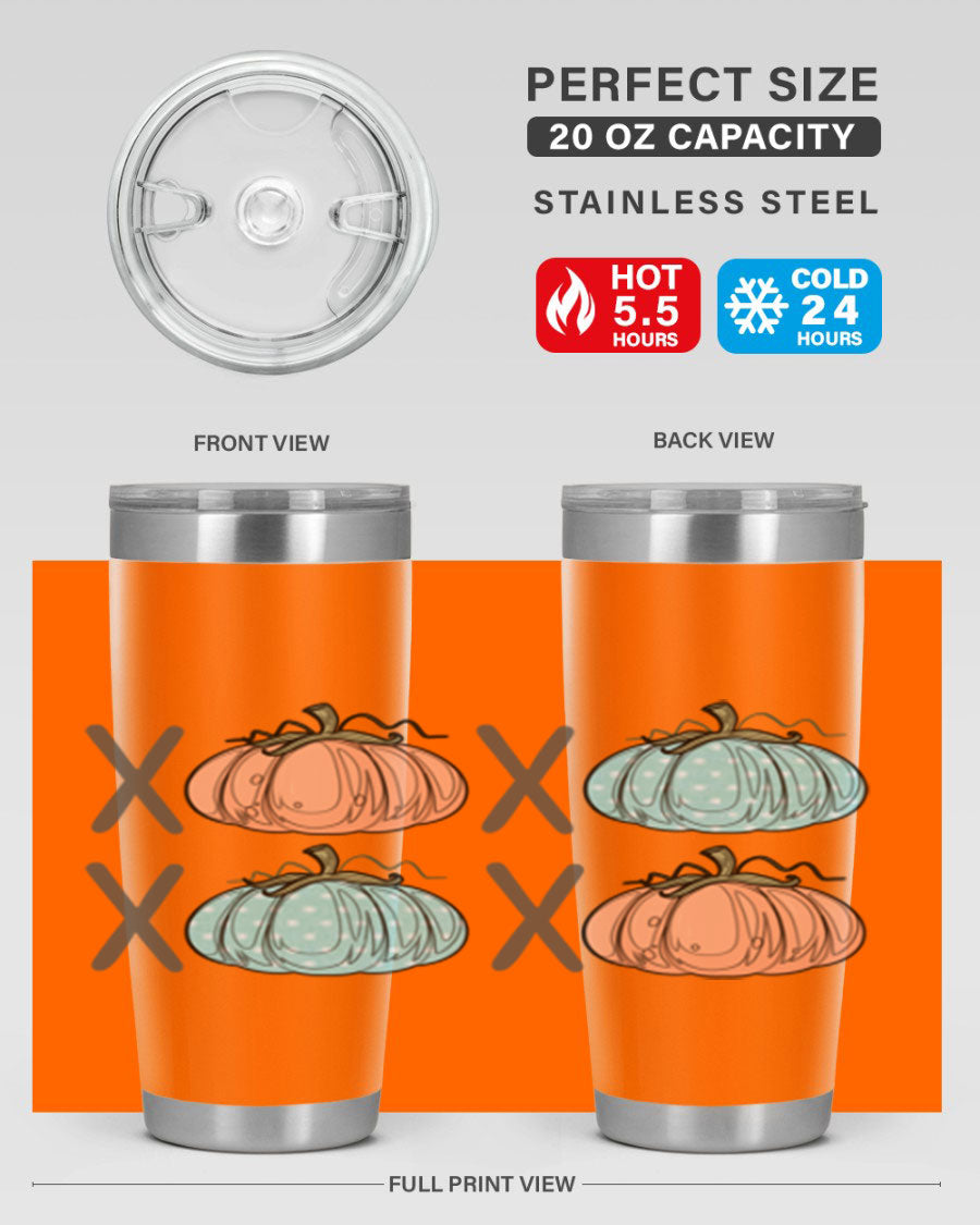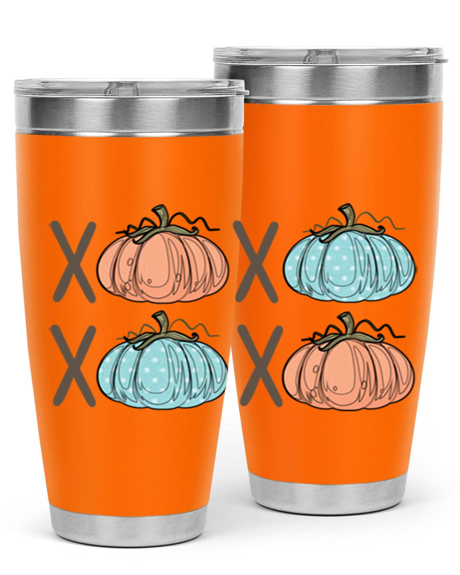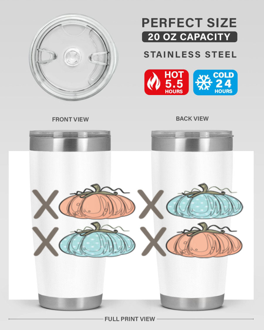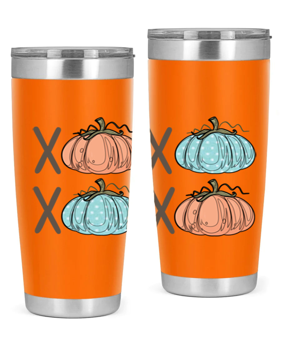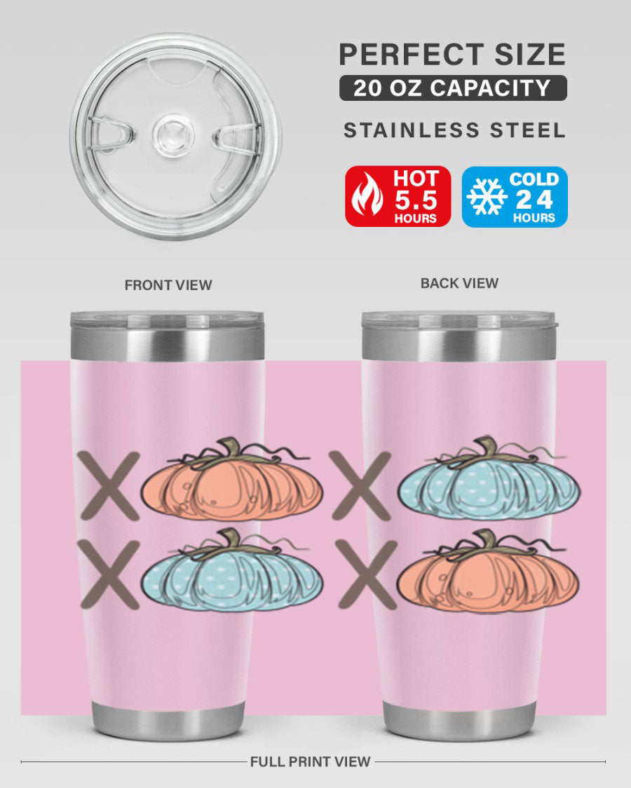 Introducing the Fall Pumpkin XOXO 20oz Tumbler, a perfect companion for your autumn adventures. This tumbler is designed to keep your beverages at the ideal temperature, whether you prefer hot coffee on a chilly morning or iced tea during a warm afternoon. Made from double wall vacuum stainless steel with copper lining, this tumbler ensures that your drinks stay hot for up to 5.5 hours and cool for an impressive 24 hours.