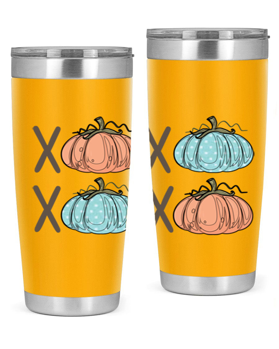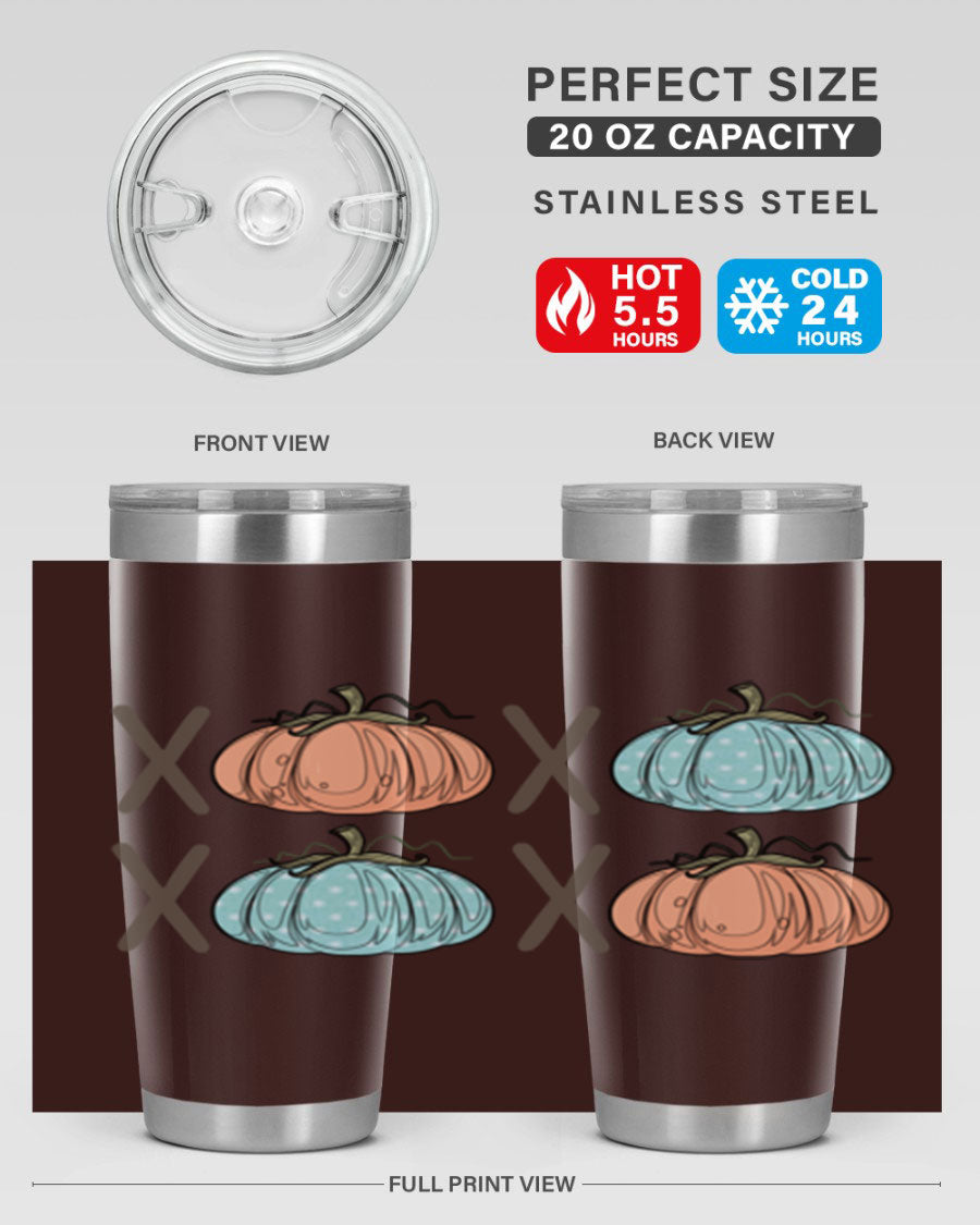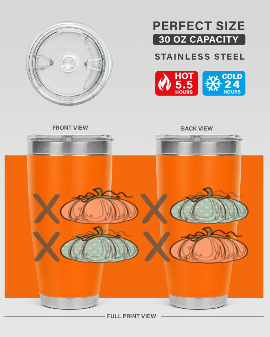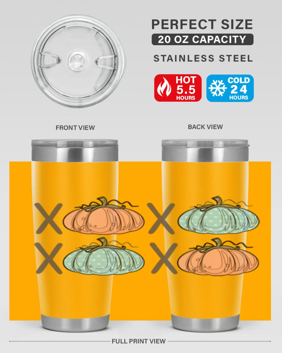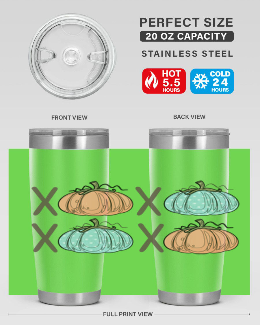 Introducing the Fall Pumpkin XOXO 20oz Tumbler, a perfect companion for your autumn adventures. This tumbler is designed to keep your beverages at the ideal temperature, whether you prefer hot coffee on a chilly morning or iced tea during a warm afternoon. Made from double wall vacuum stainless steel with copper lining, this tumbler ensures that your drinks stay hot for up to 5.5 hours and cool for an impressive 24 hours.