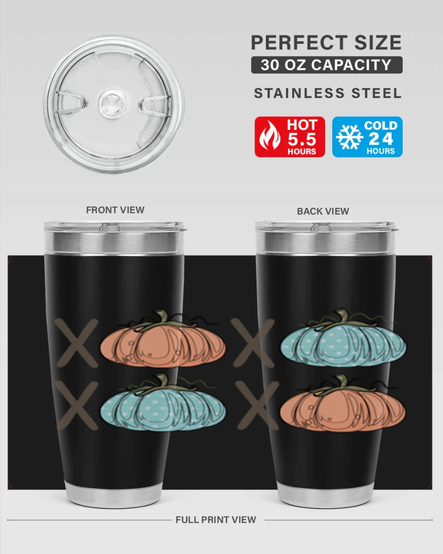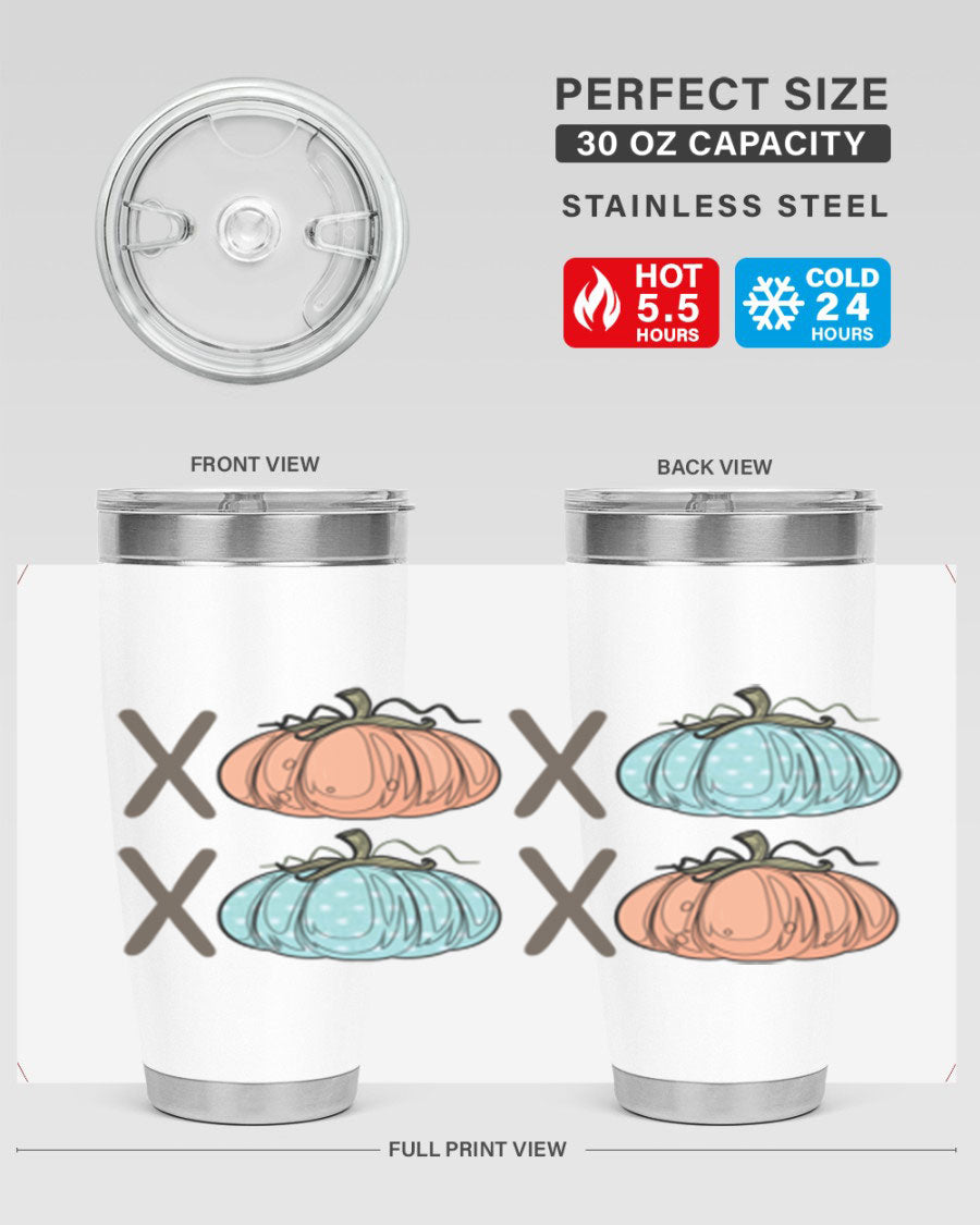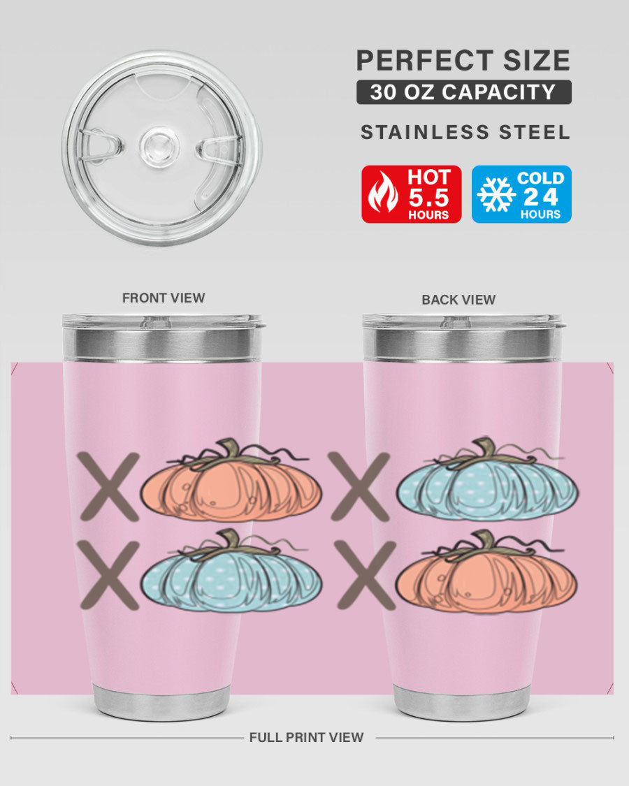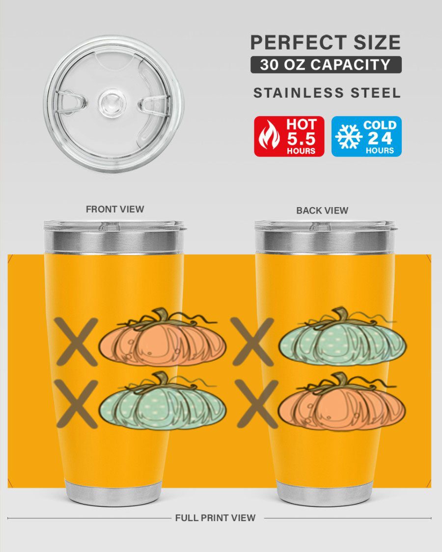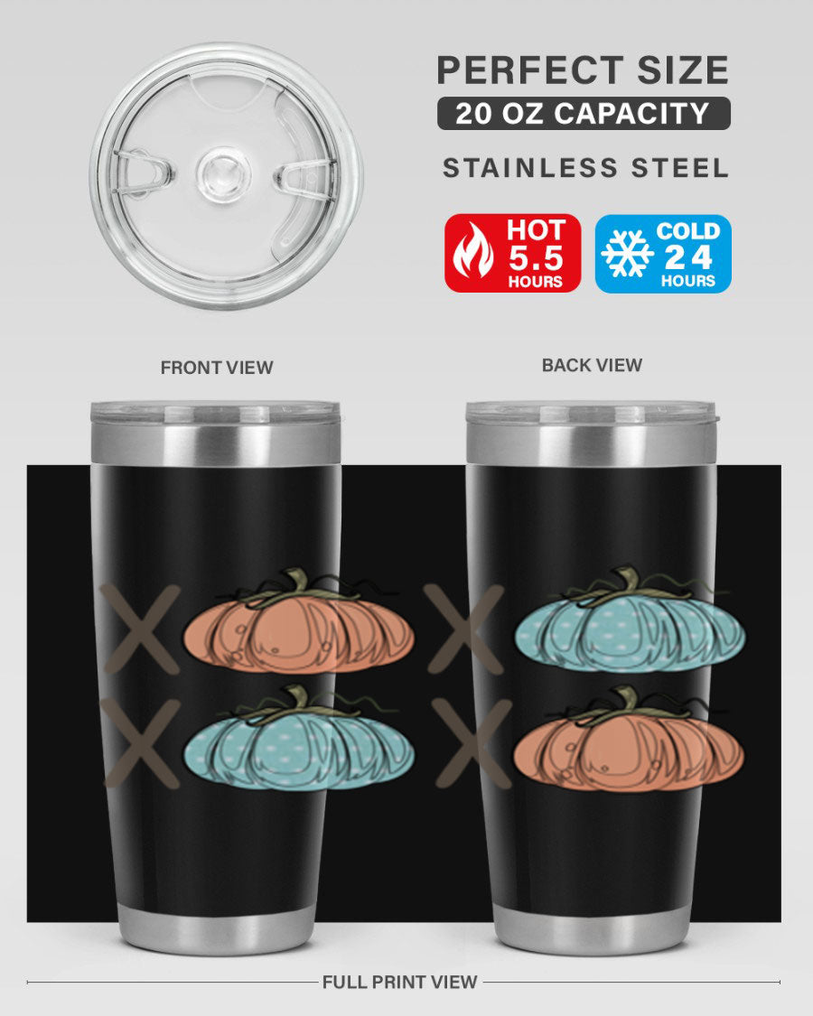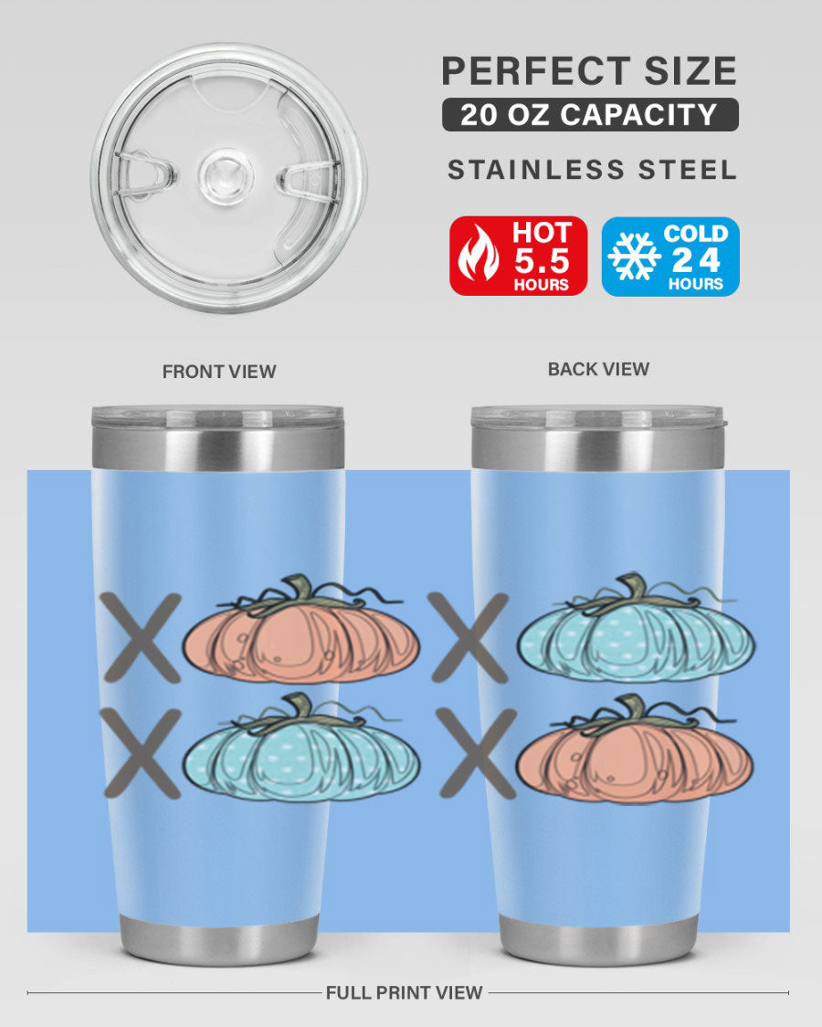 Introducing the Fall Pumpkin XOXO 20oz Tumbler, a perfect companion for your autumn adventures. This tumbler is designed to keep your beverages at the ideal temperature, whether you prefer hot coffee on a chilly morning or iced tea during a warm afternoon. Made from double wall vacuum stainless steel with copper lining, this tumbler ensures that your drinks stay hot for up to 5.5 hours and cool for an impressive 24 hours.