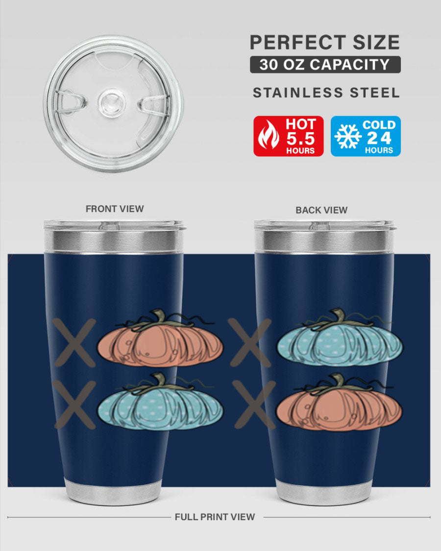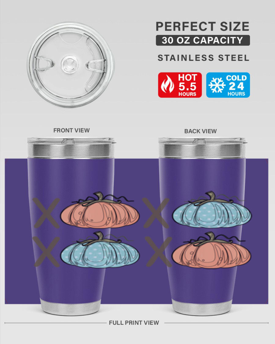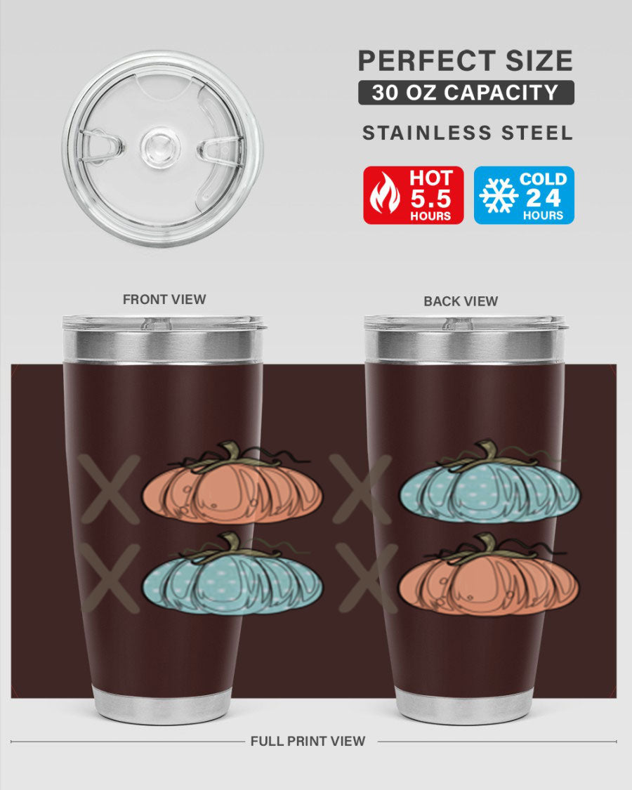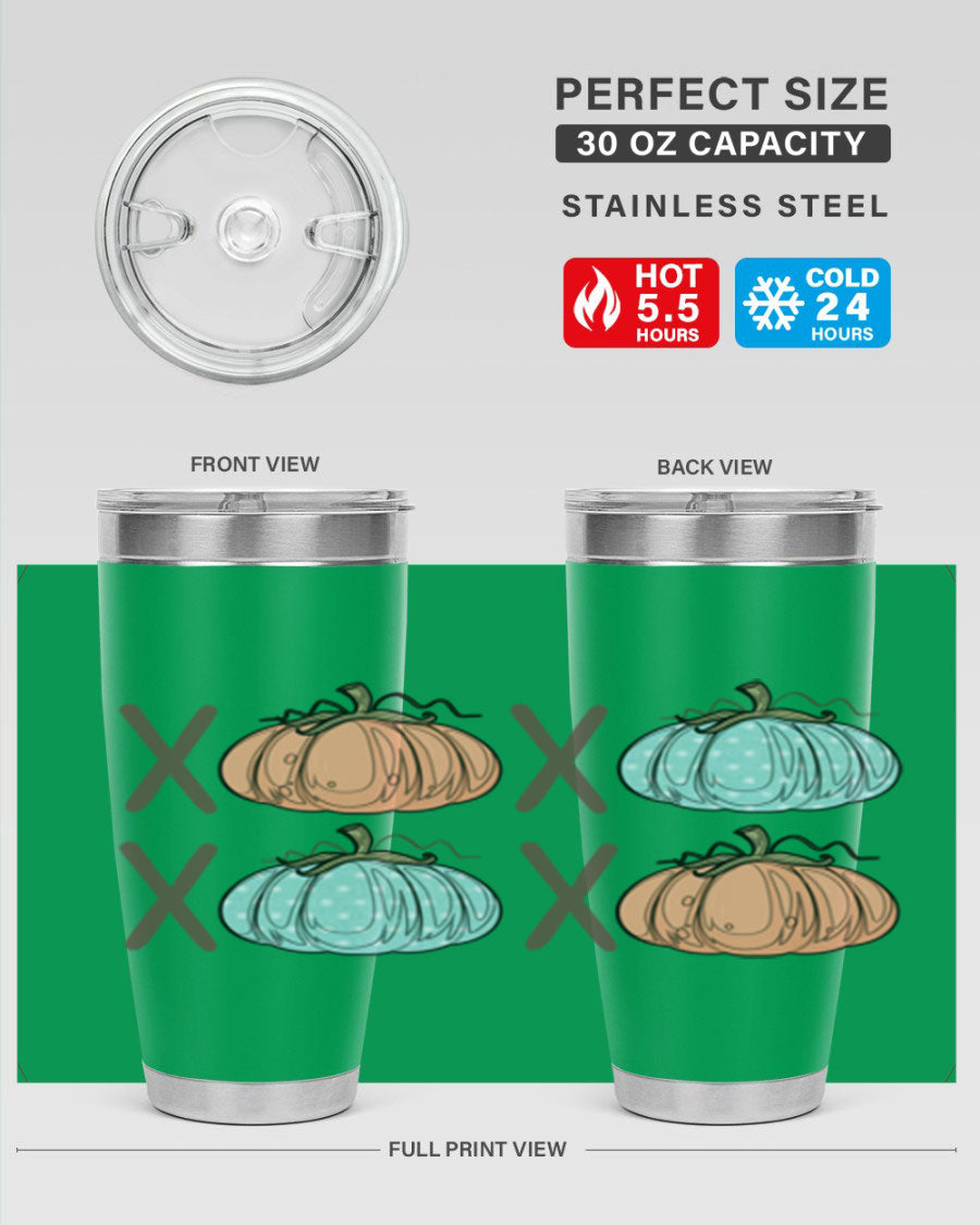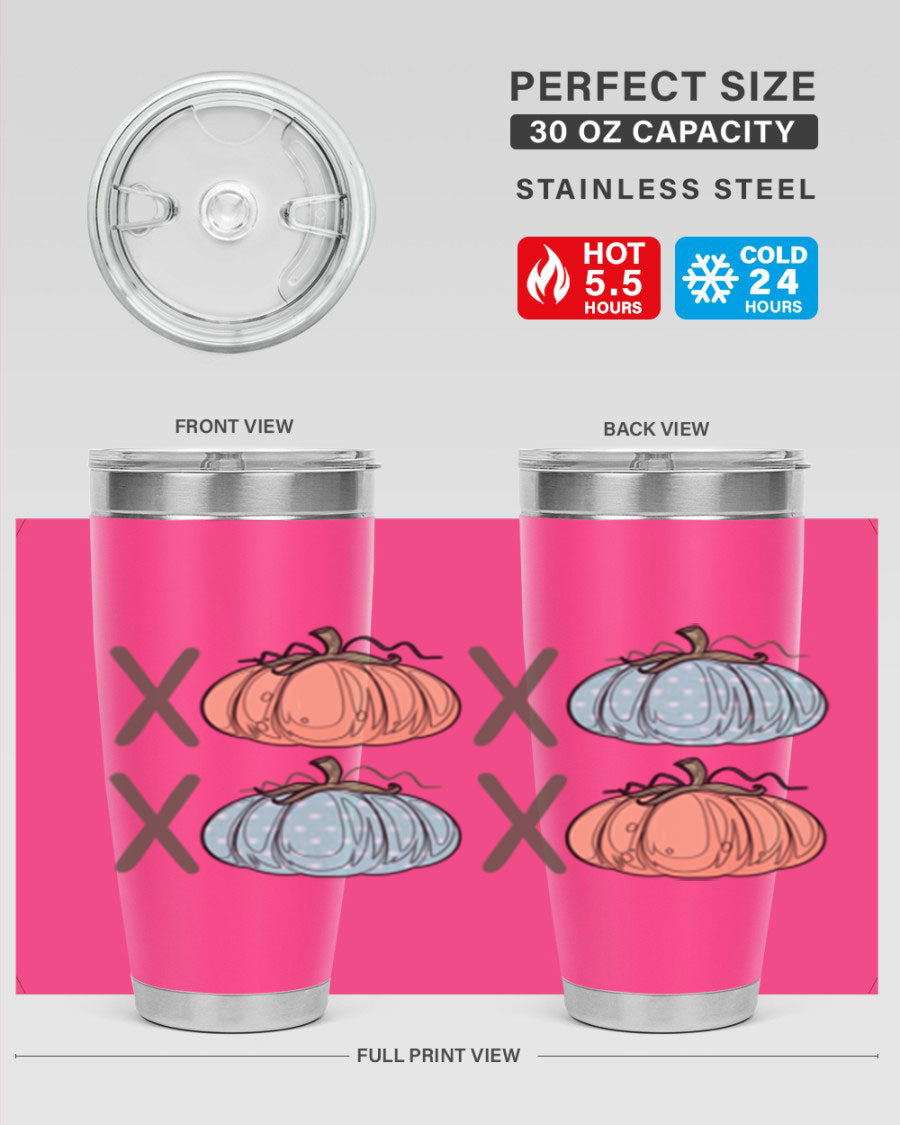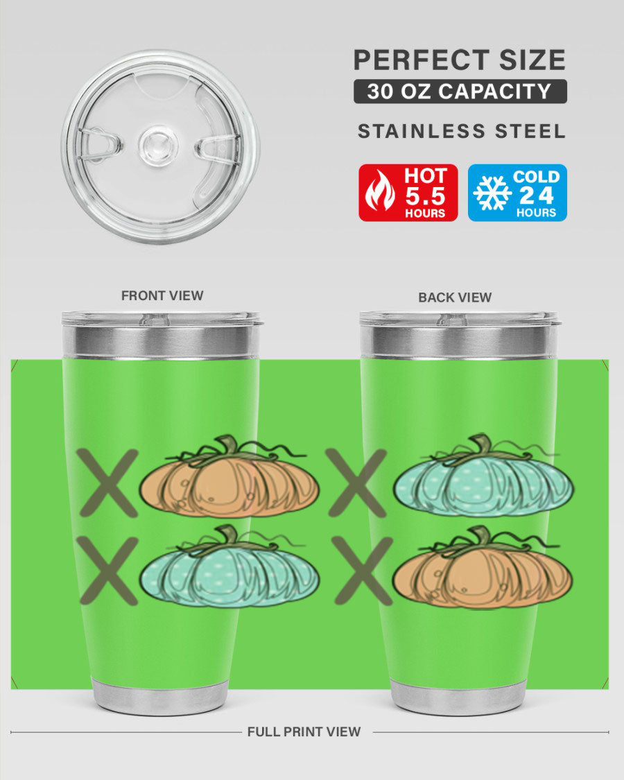Introducing the Fall Pumpkin XOXO 20oz Tumbler, a perfect companion for your autumn adventures. This tumbler is designed to keep your beverages at the ideal temperature, whether you prefer hot coffee on a chilly morning or iced tea during a warm afternoon. Made from double wall vacuum stainless steel with copper lining, this tumbler ensures that your drinks stay hot for up to 5.5 hours and cool for an impressive 24 hours.