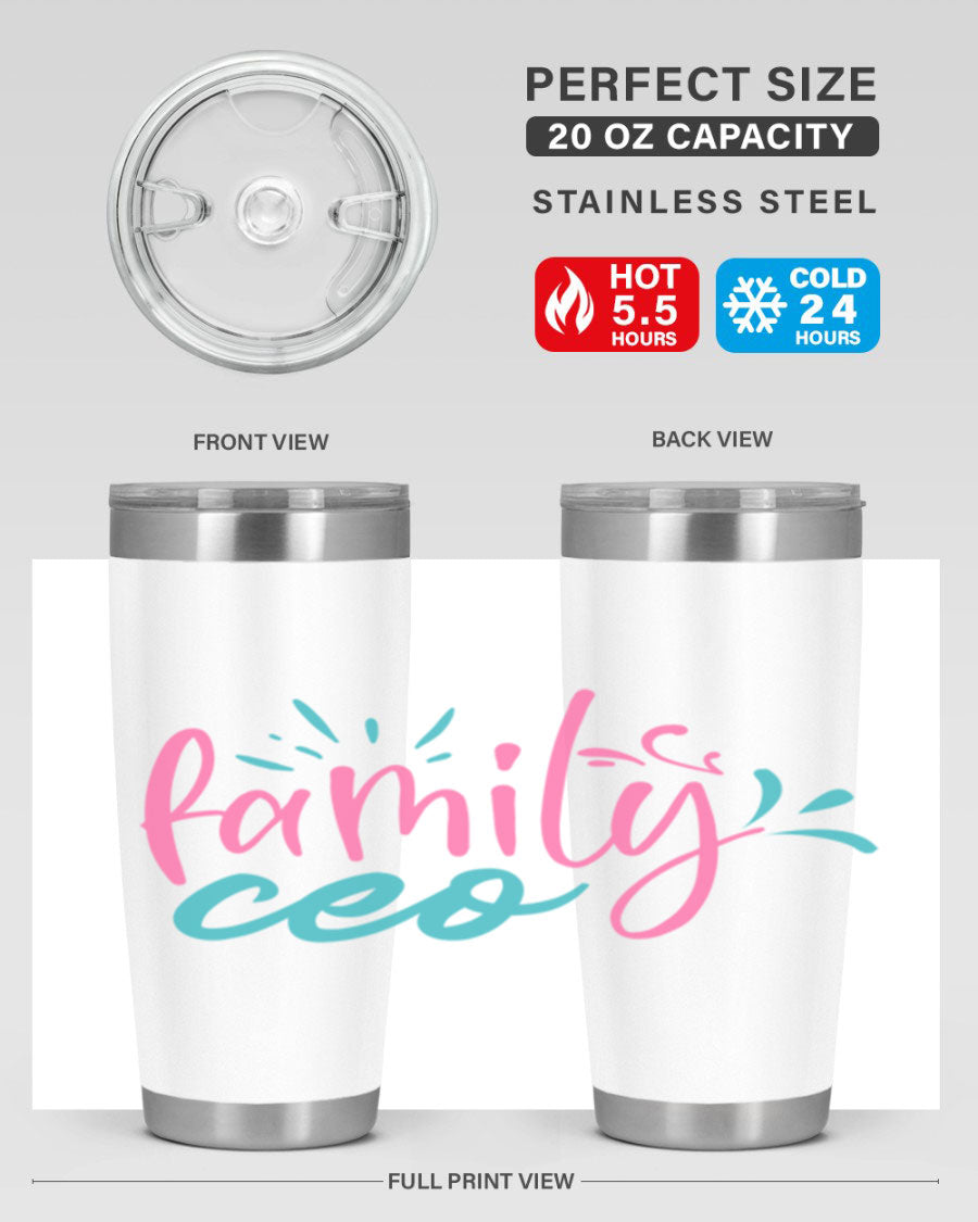 The Family CEO 347# Mom Tumbler is the perfect companion for busy moms who need to stay hydrated throughout the day. This stylish 20oz tumbler is designed with a double wall vacuum insulation that ensures your favorite beverages maintain their temperature for hours. Whether you're sipping on hot coffee during your morning commute or enjoying a refreshing iced tea at the park, this tumbler has got you covered.