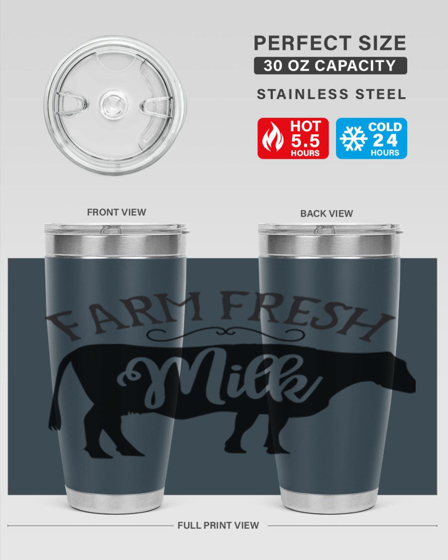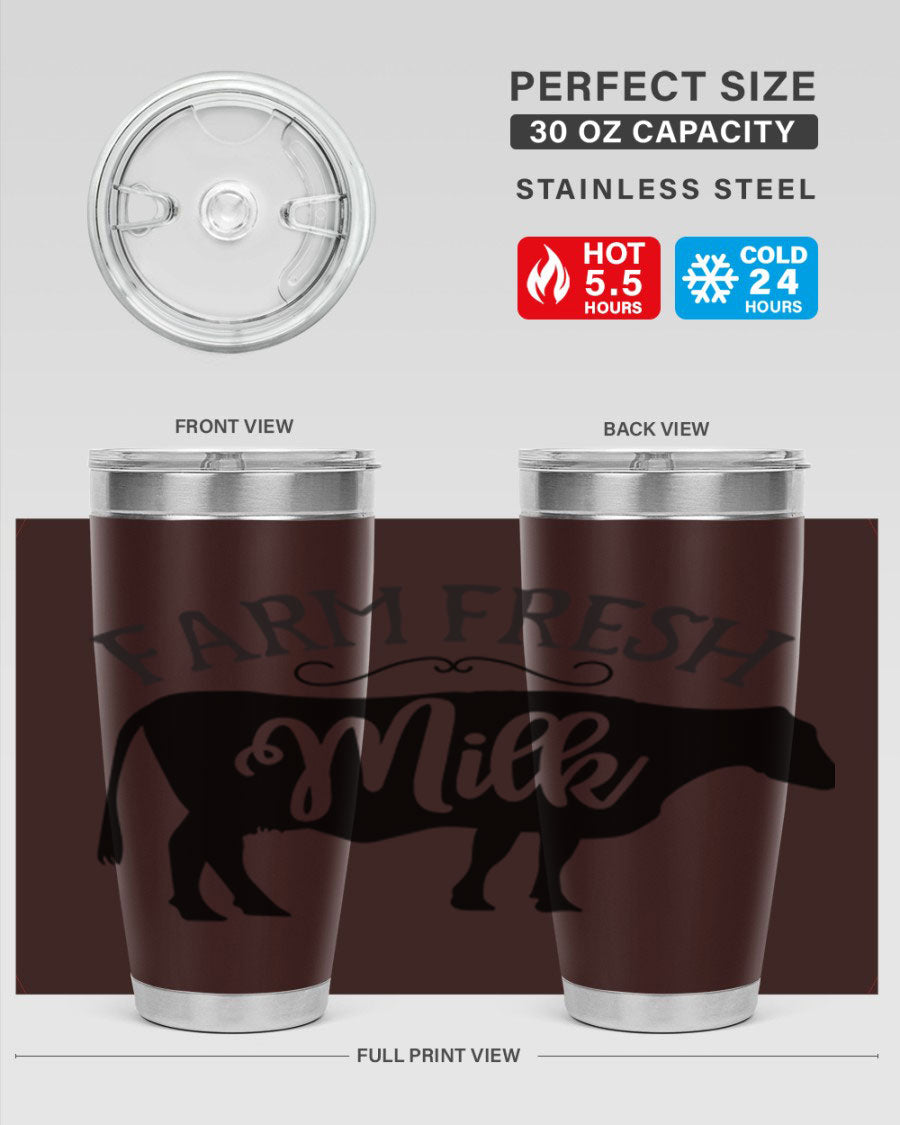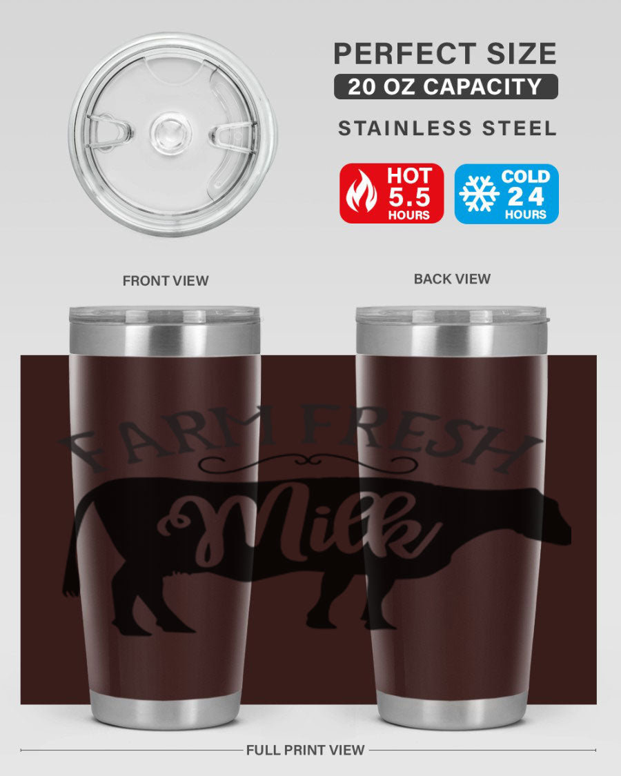 Whether you're a coffee lover, tea enthusiast, or simply enjoy staying hydrated with water, the Farm Fresh Milk 101# Tumbler is versatile enough to accommodate all your beverage needs. Its generous 20oz capacity allows you to carry enough liquid to keep you refreshed throughout the day.