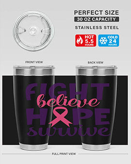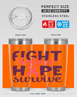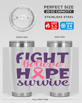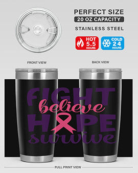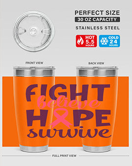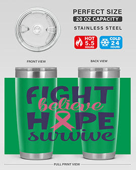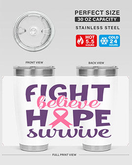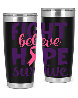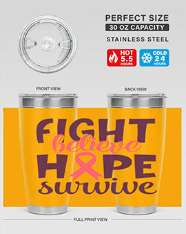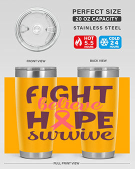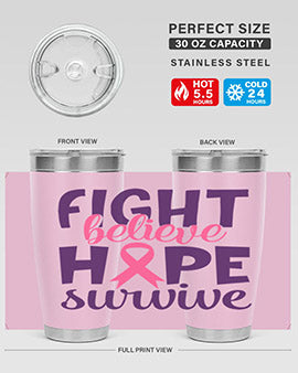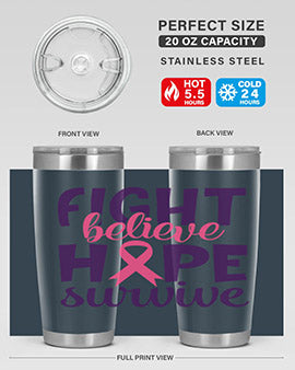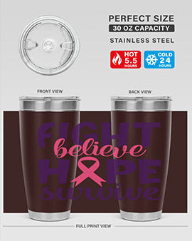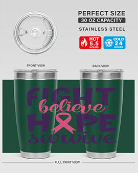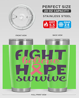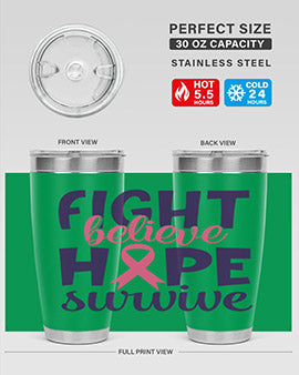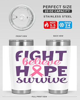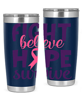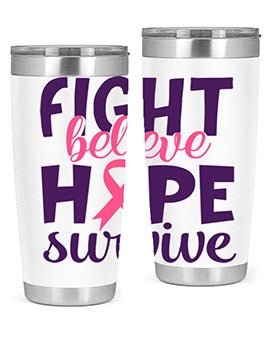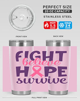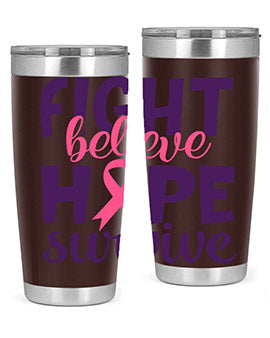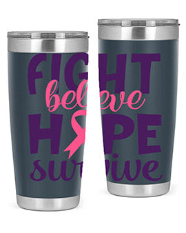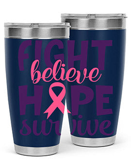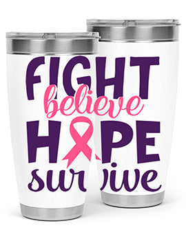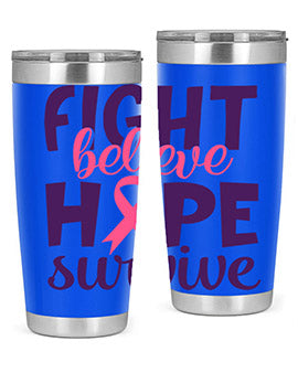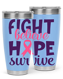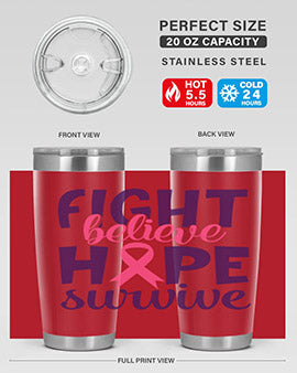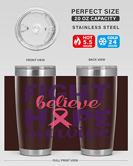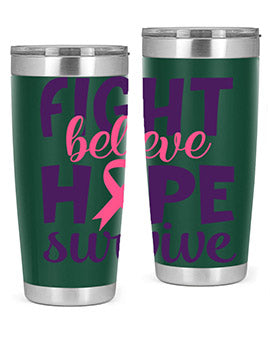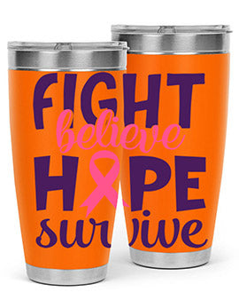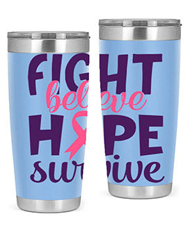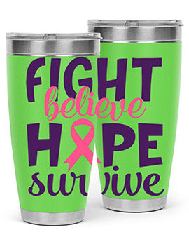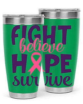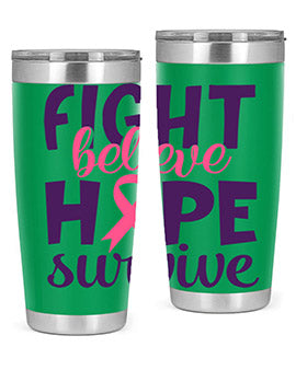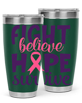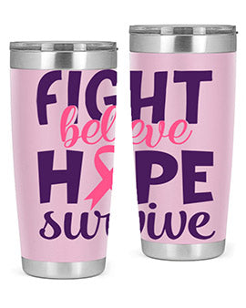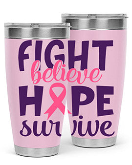 Fight Believe Hope Survive Tumbler in stainless steel with a vibrant design, perfect for breast cancer awareness.