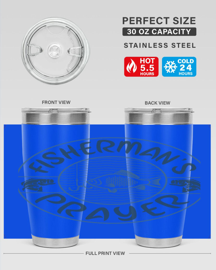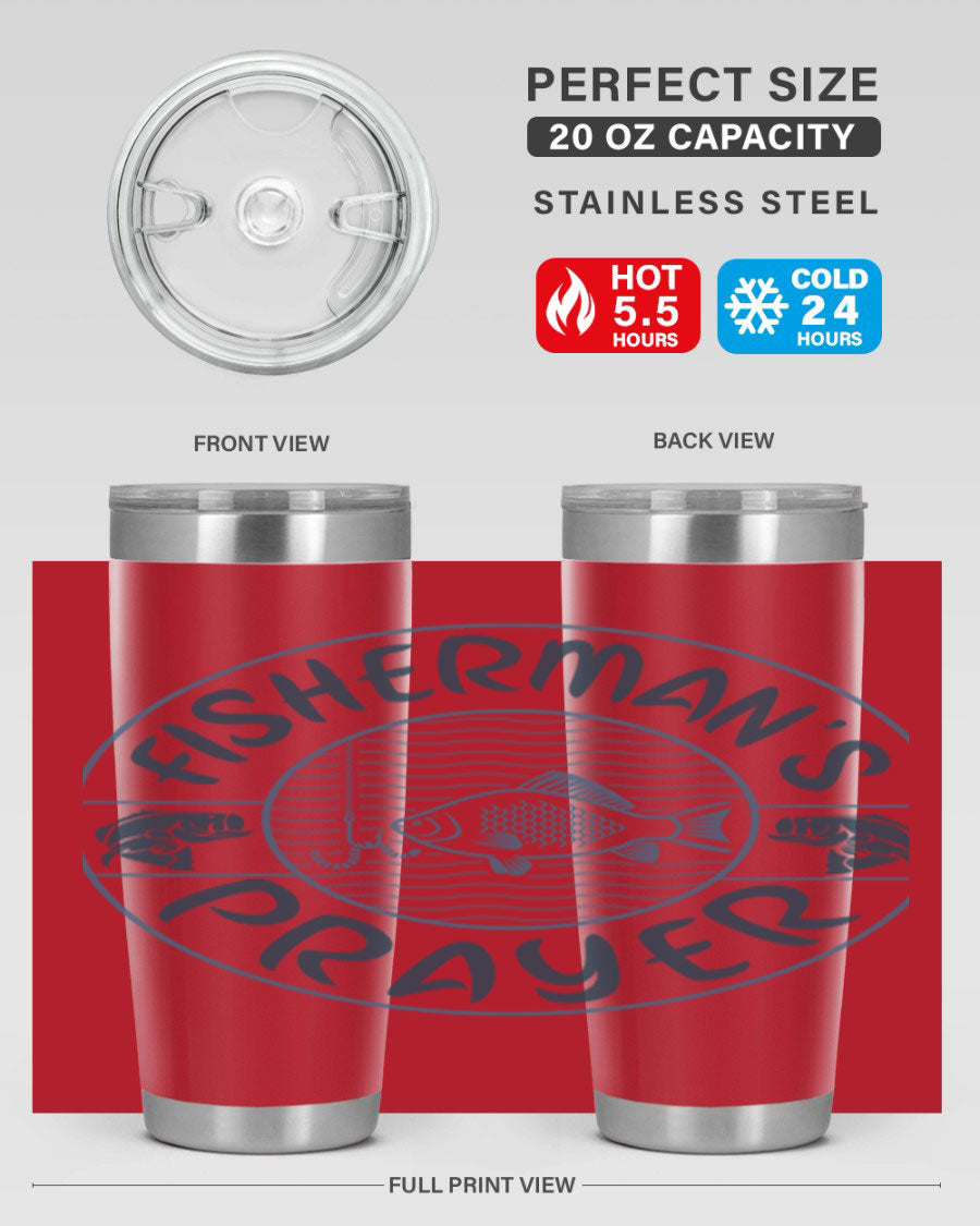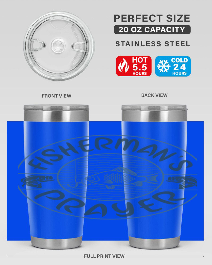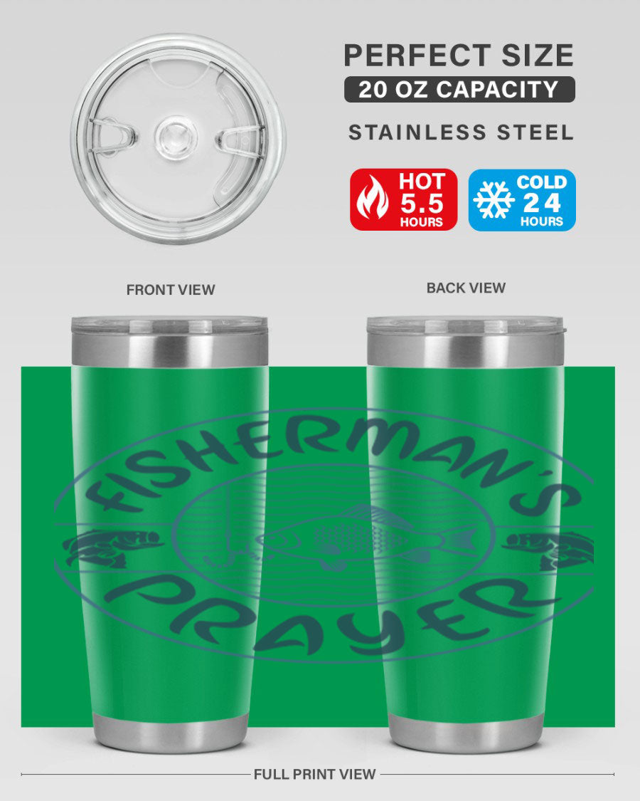 In summary, the Fisherman's Prayer 20oz Tumbler is more than just a beverage container; it's a lifestyle accessory for those who love fishing. With its superior insulation, durable construction, and stylish design, this tumbler is a must-have for anyone who enjoys the great outdoors. Don't miss out on the opportunity to elevate your fishing experience with this exceptional tumbler.