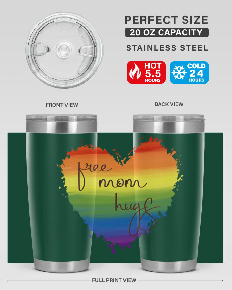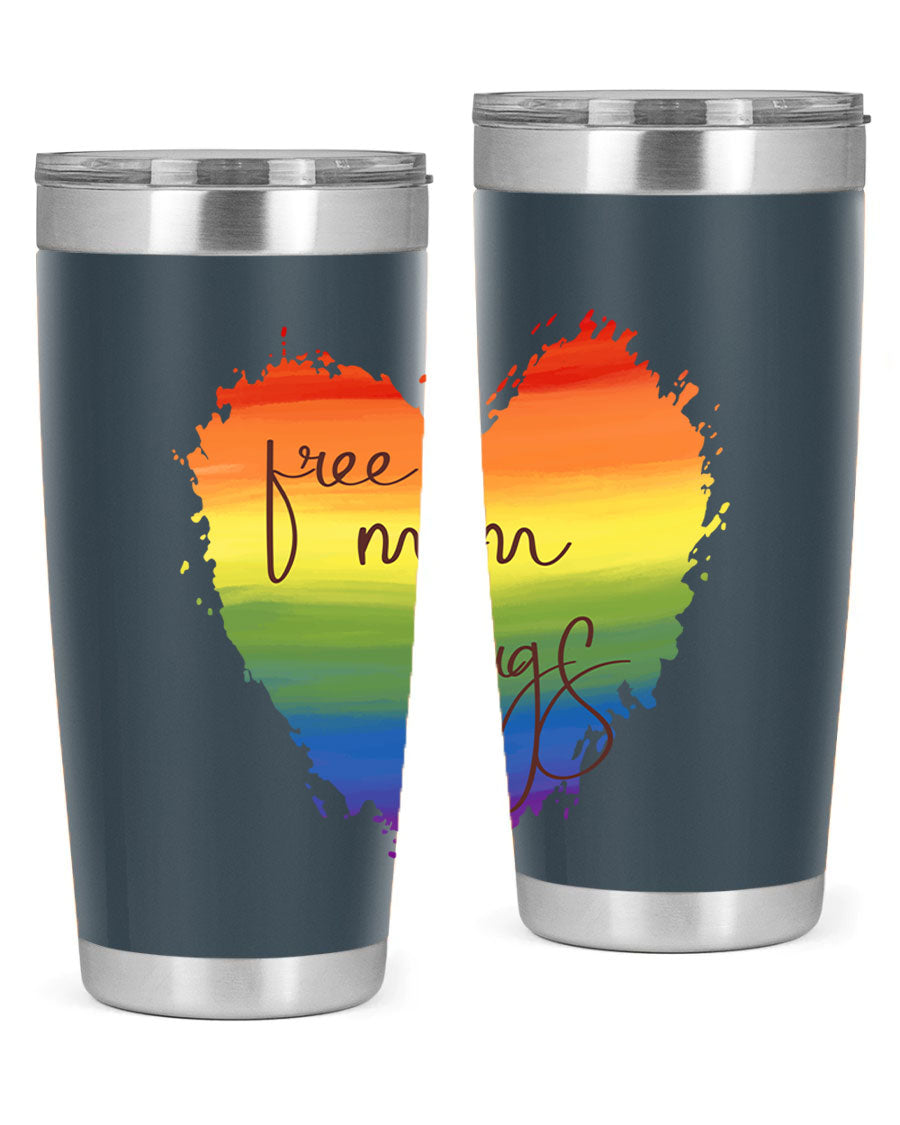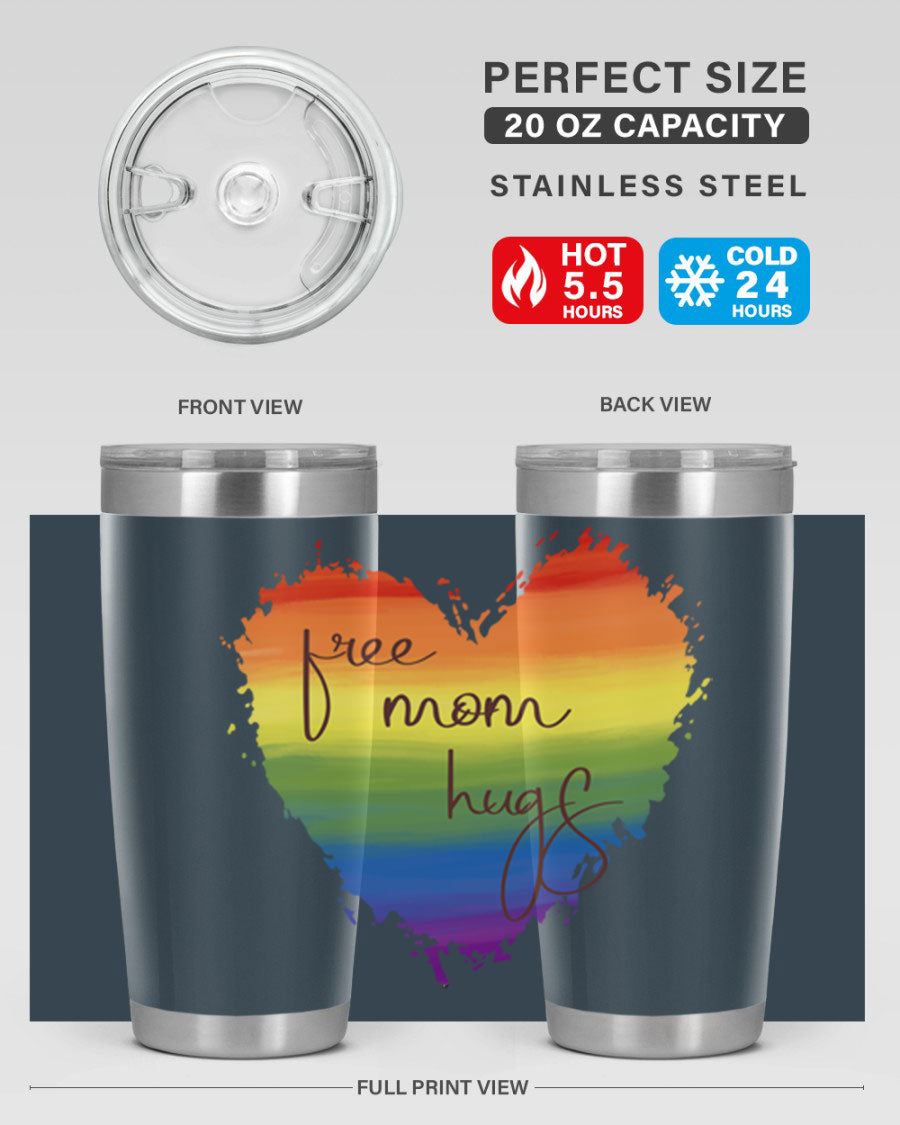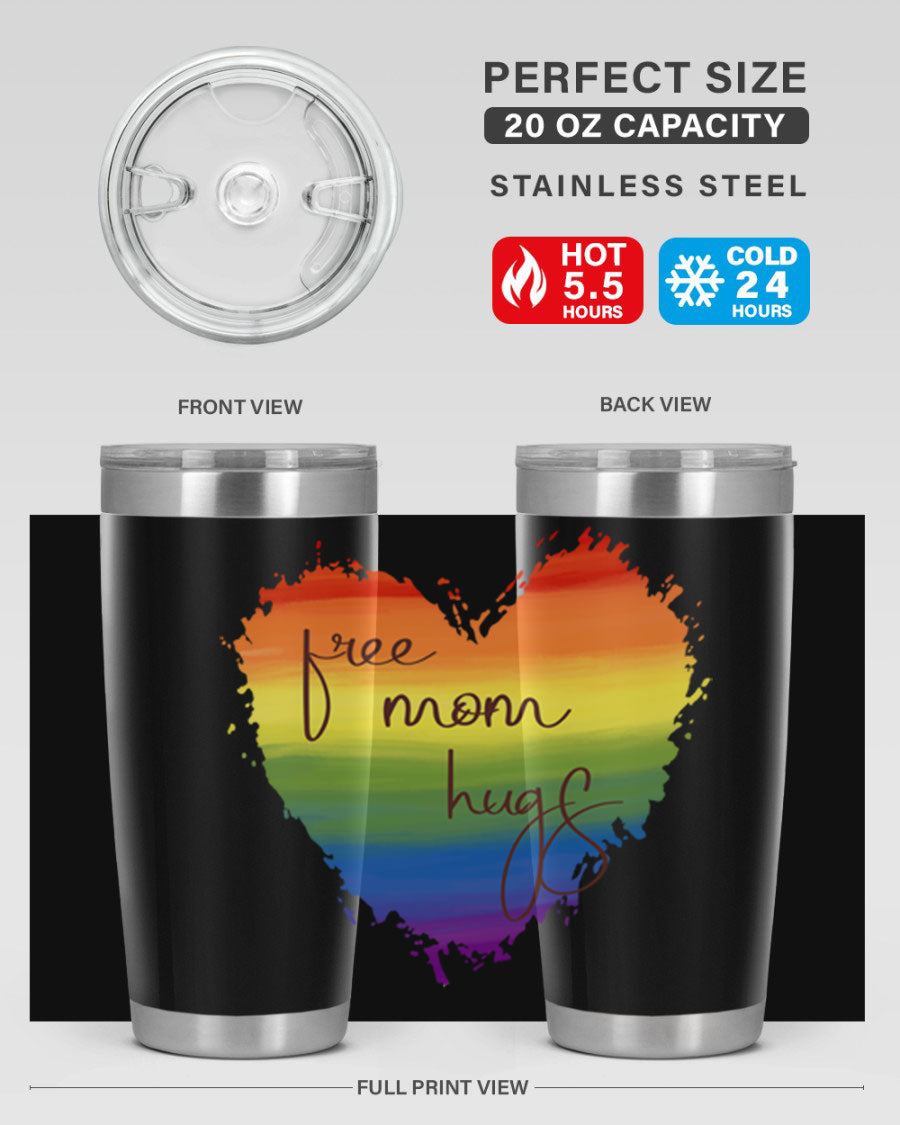 Introducing the Free Mom Hugs Rainbow Pride LGBT Tumbler, a vibrant and stylish way to show your support for the LGBTQ+ community while enjoying your favorite beverages. This tumbler is designed with a double wall vacuum stainless steel construction, ensuring that your drinks stay at the perfect temperature for hours. Whether you're sipping hot coffee or iced tea, this tumbler has you covered.
