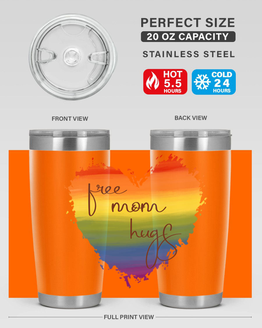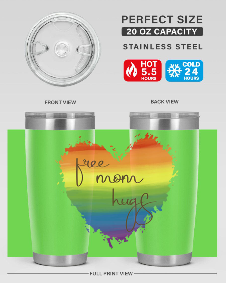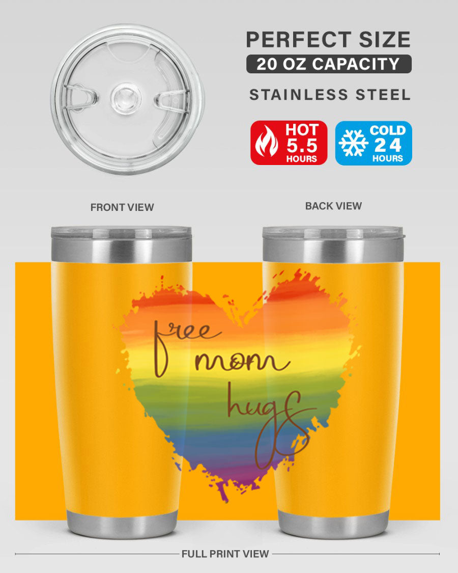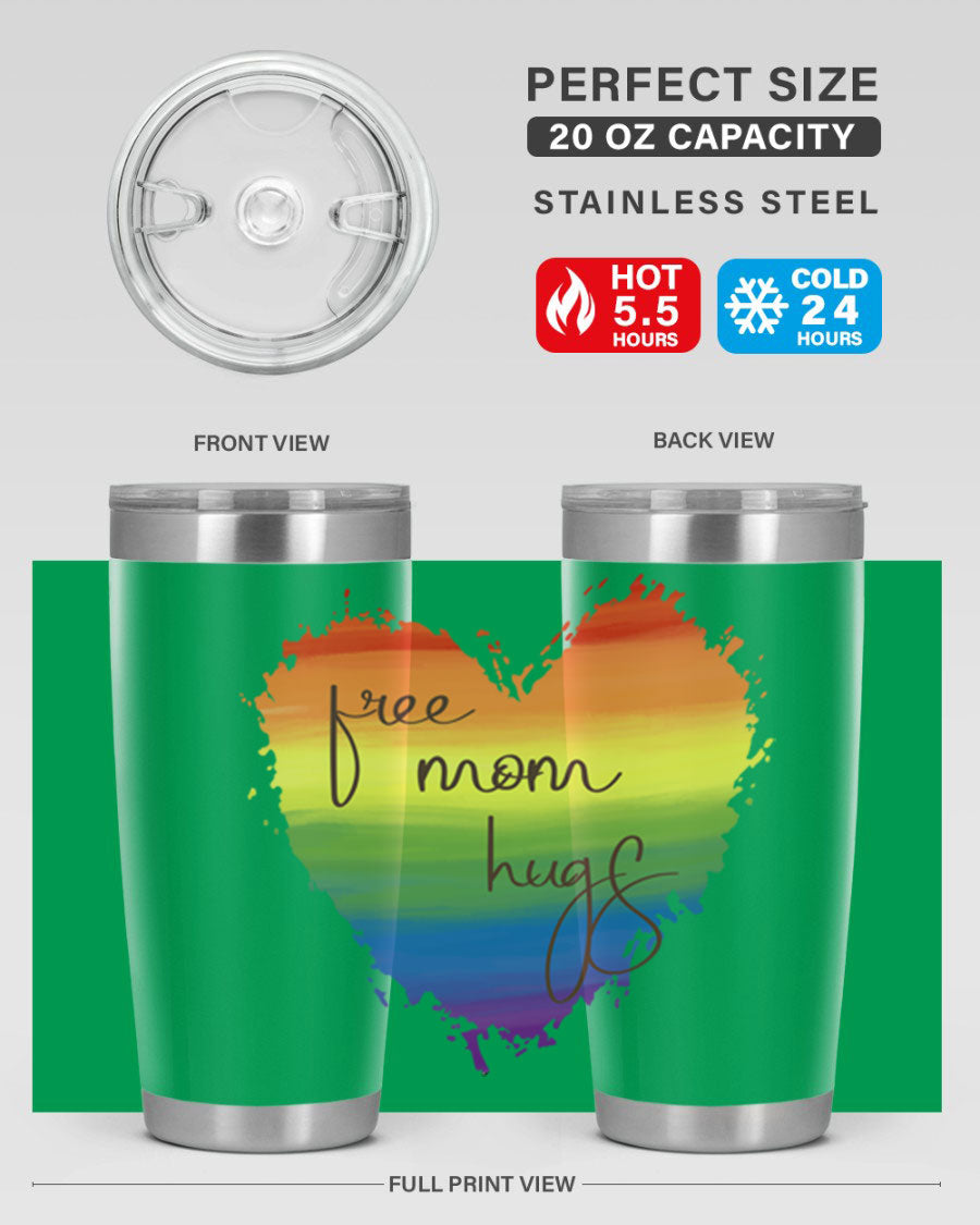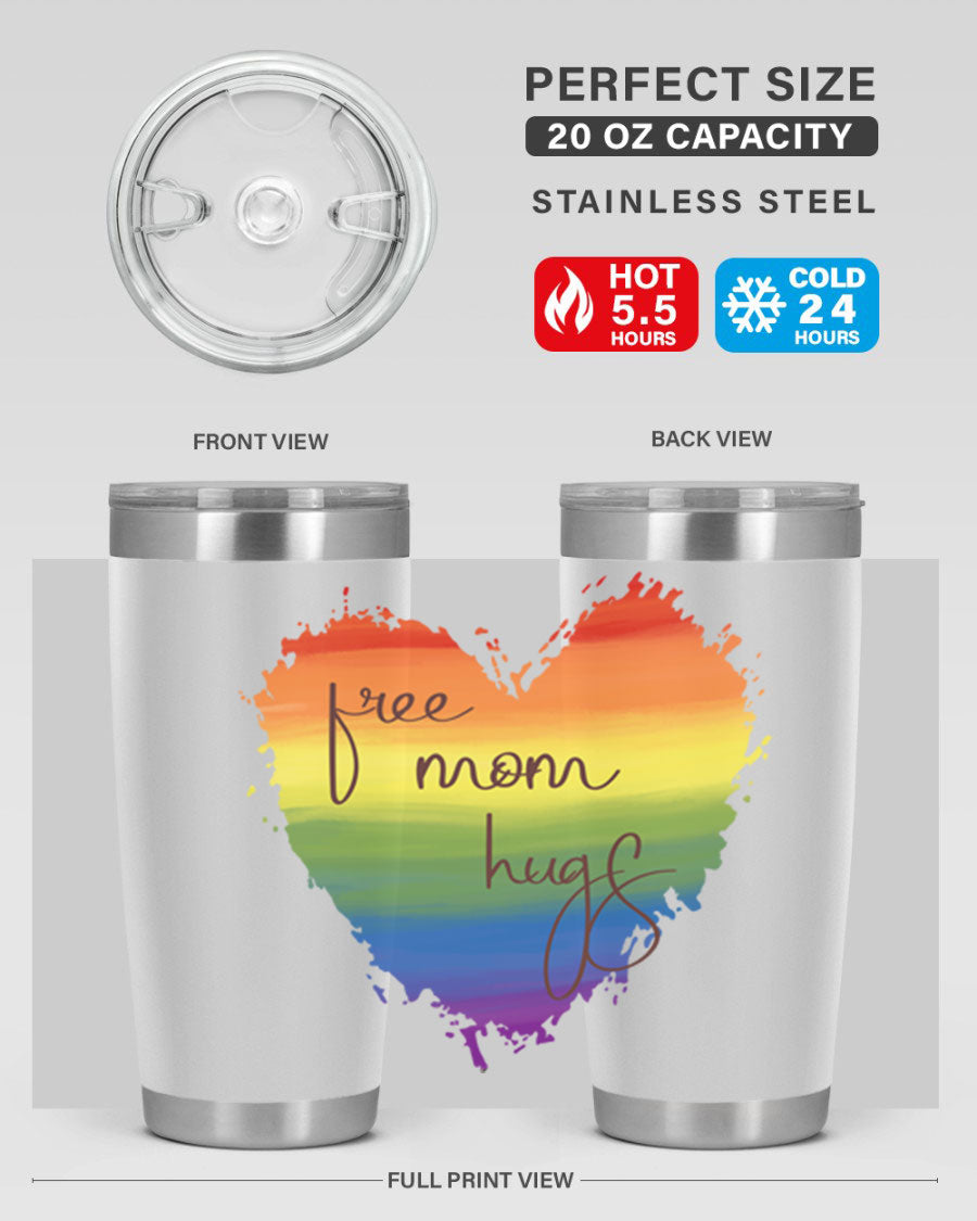 Introducing the Free Mom Hugs Rainbow Pride LGBT Tumbler, a vibrant and stylish way to show your support for the LGBTQ+ community while enjoying your favorite beverages. This tumbler is designed with a double wall vacuum stainless steel construction, ensuring that your drinks stay at the perfect temperature for hours. Whether you're sipping hot coffee or iced tea, this tumbler has you covered.