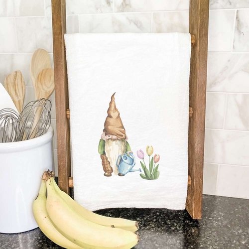 Introducing our delightful Garden Gnome with Tulips Cotton Tea Towel, a perfect blend of functionality and charm for your kitchen. This tea towel is not just a kitchen accessory; it’s a piece of art that adds a touch of whimsy to your home. Crafted from 100% absorbent cotton, this towel is designed to handle all your drying needs while showcasing a beautiful garden gnome design surrounded by vibrant tulips.