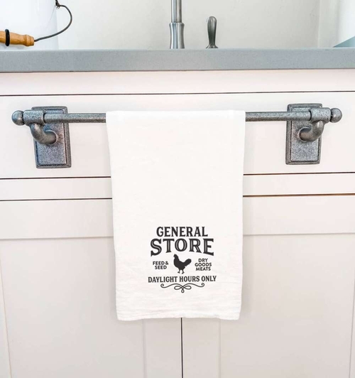 Introducing our General Store Cotton Tea Towel, a must-have kitchen accessory that combines functionality with beautiful design. Made from 100% absorbent cotton, this tea towel is perfect for drying dishes, wiping hands, or even as a decorative piece in your kitchen. Each towel is printed in small batches using vibrant, water-based inks, ensuring that every piece is unique and environmentally friendly. Crafted in rural Wisconsin, this tea towel reflects the charm and quality of American craftsmanship.