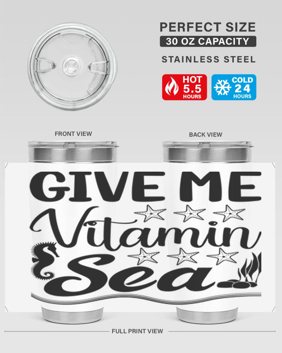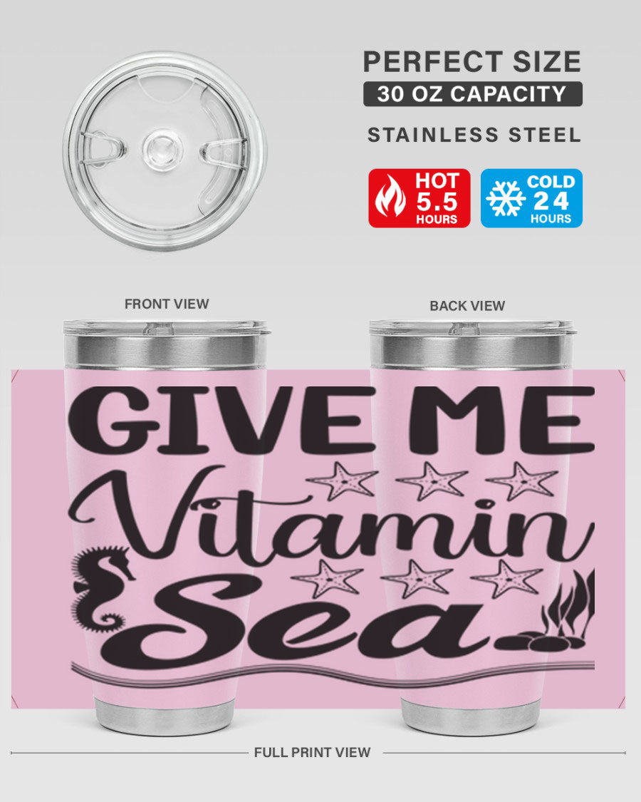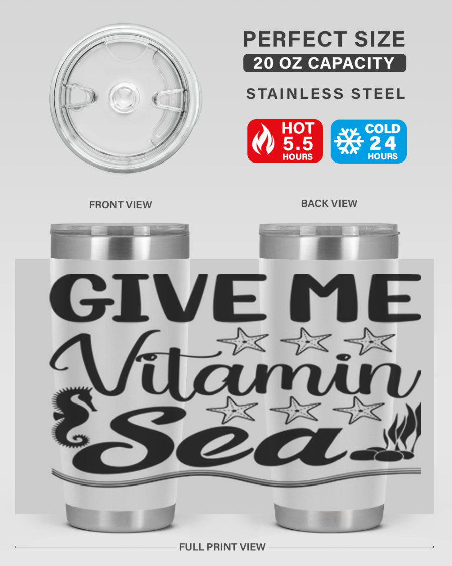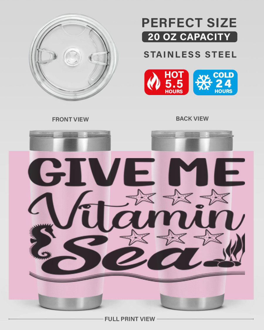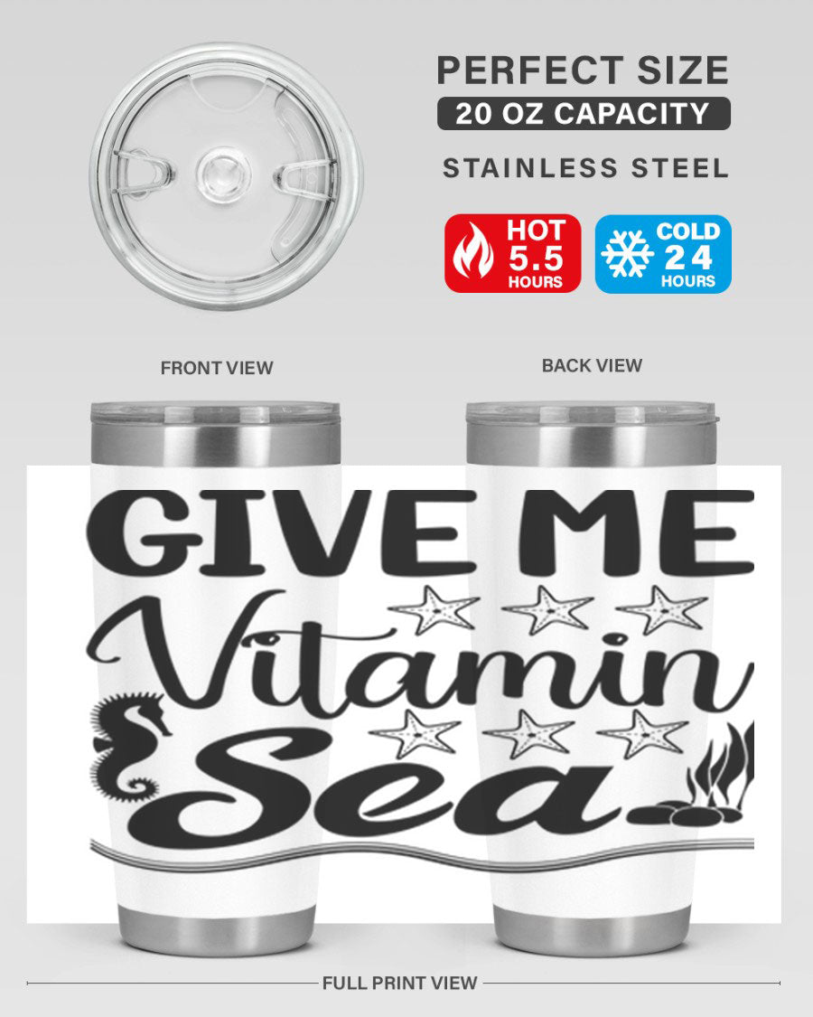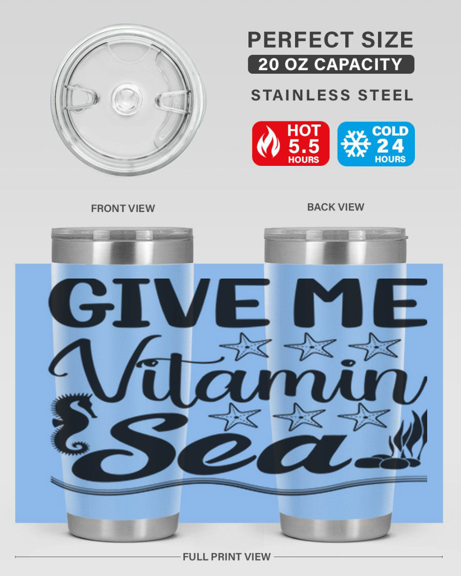 While the tumbler does not include embellishments such as rhinestones, its simple yet elegant design speaks for itself. The Give Me Vitamin Sea tumbler is perfect for anyone looking to add a touch of ocean-inspired flair to their drinkware collection.