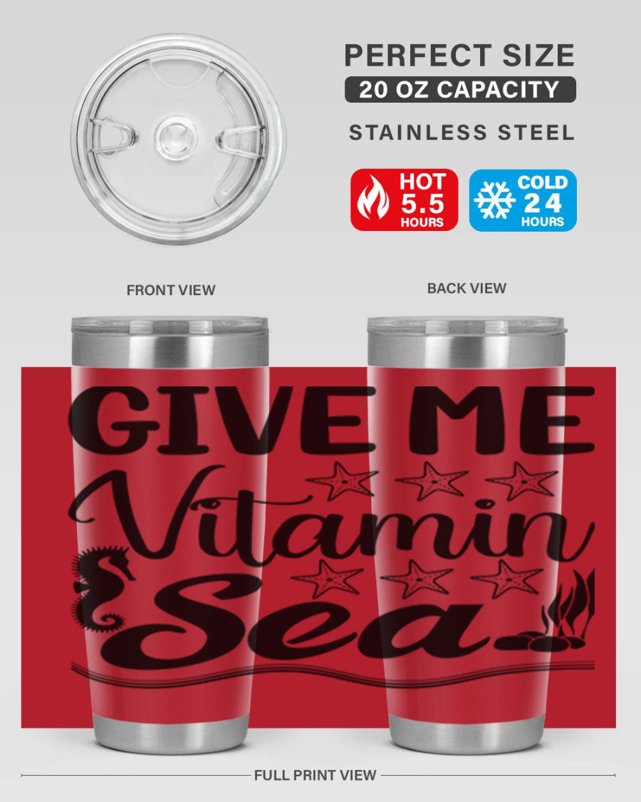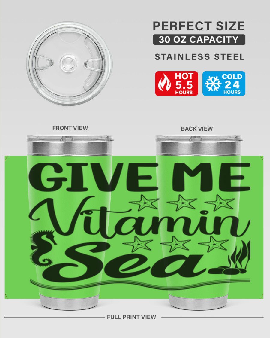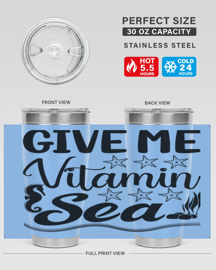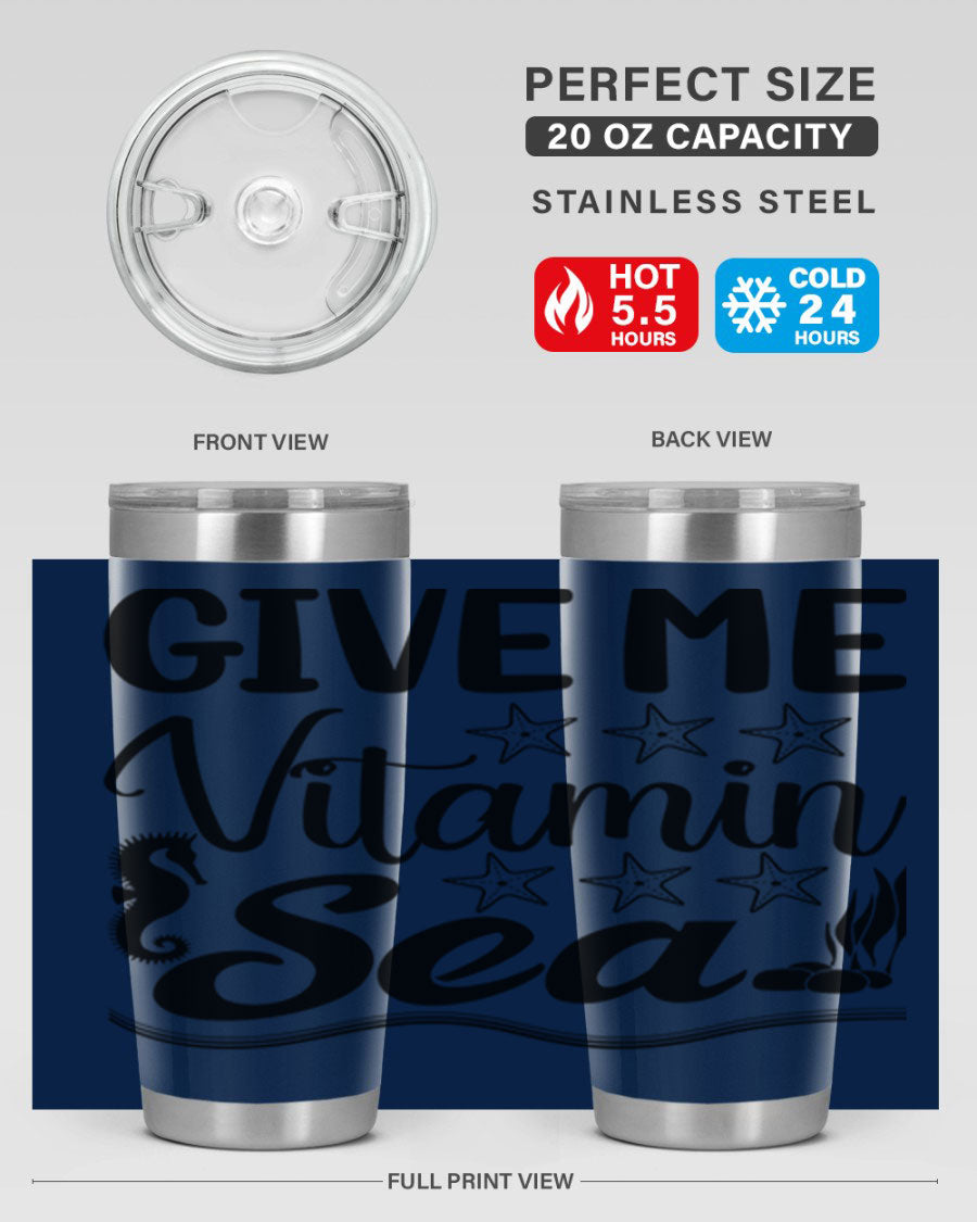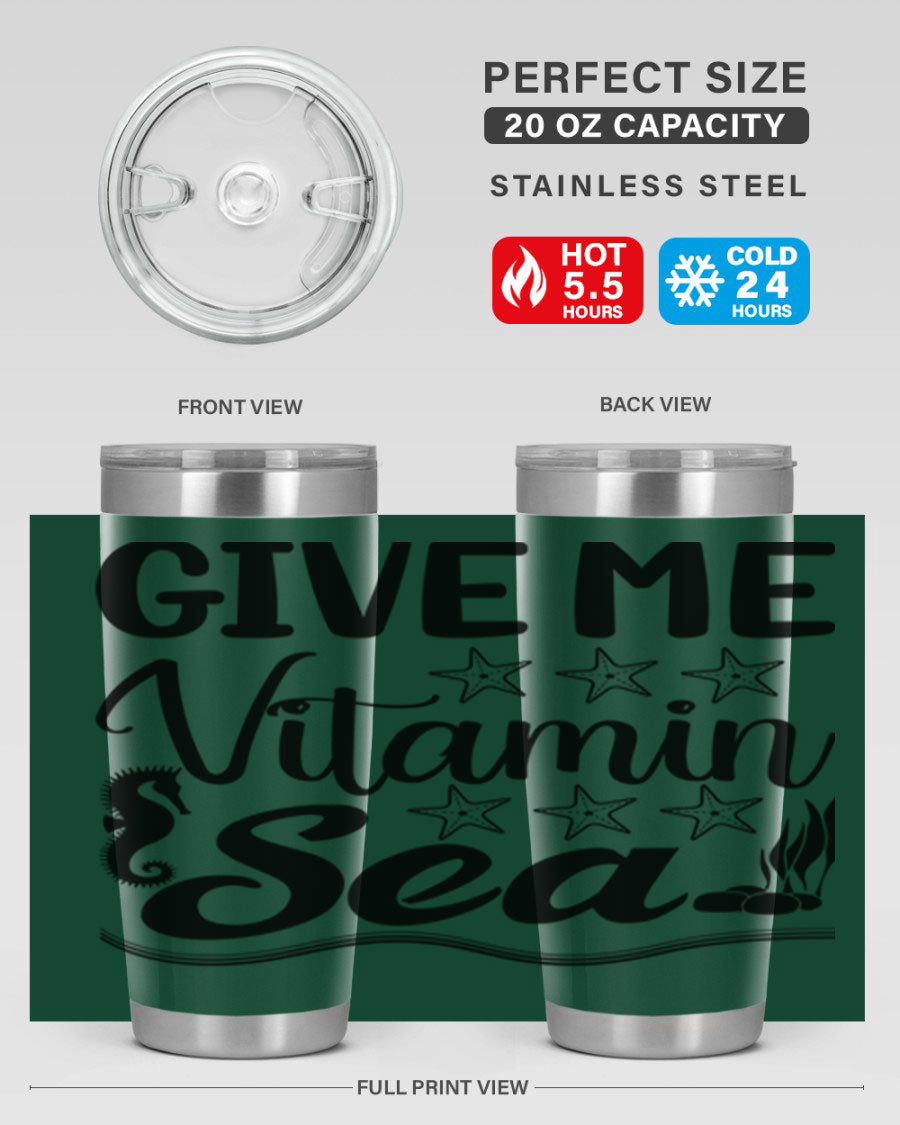 While the tumbler does not include embellishments such as rhinestones, its simple yet elegant design speaks for itself. The Give Me Vitamin Sea tumbler is perfect for anyone looking to add a touch of ocean-inspired flair to their drinkware collection.