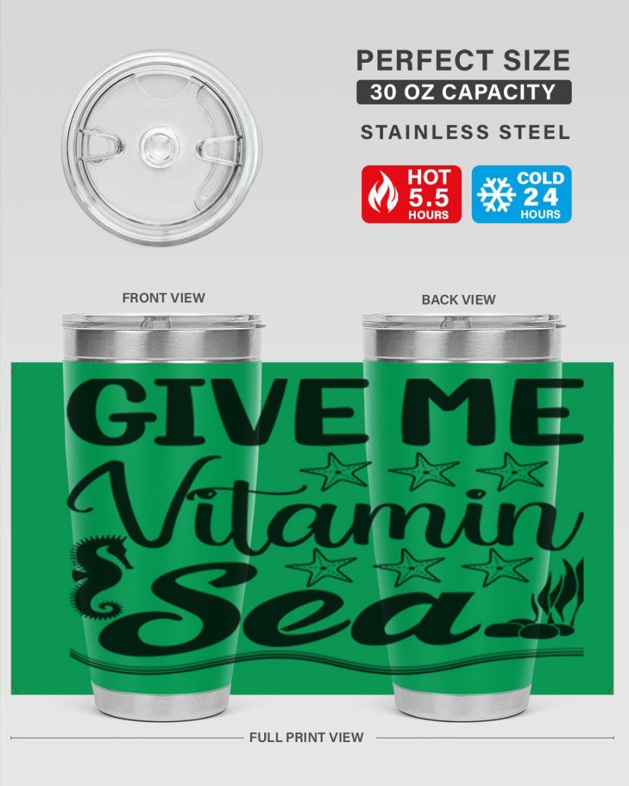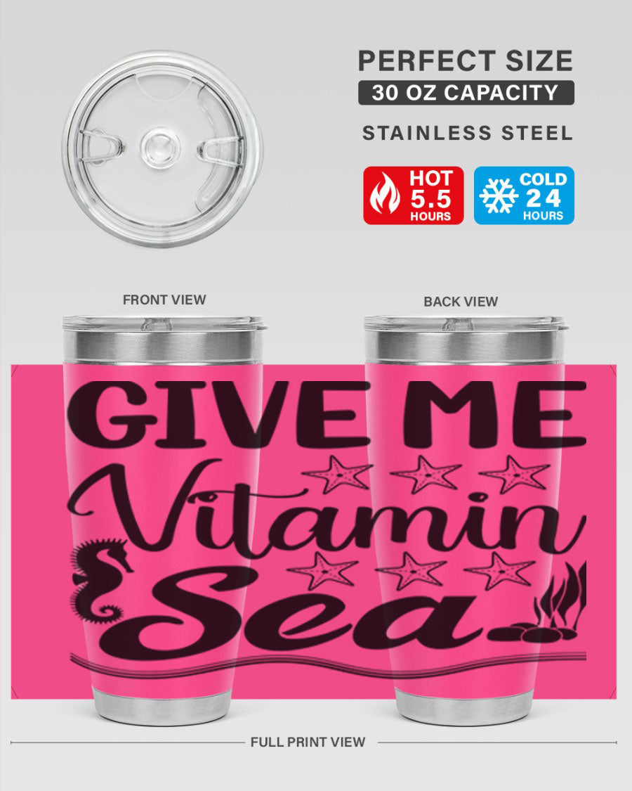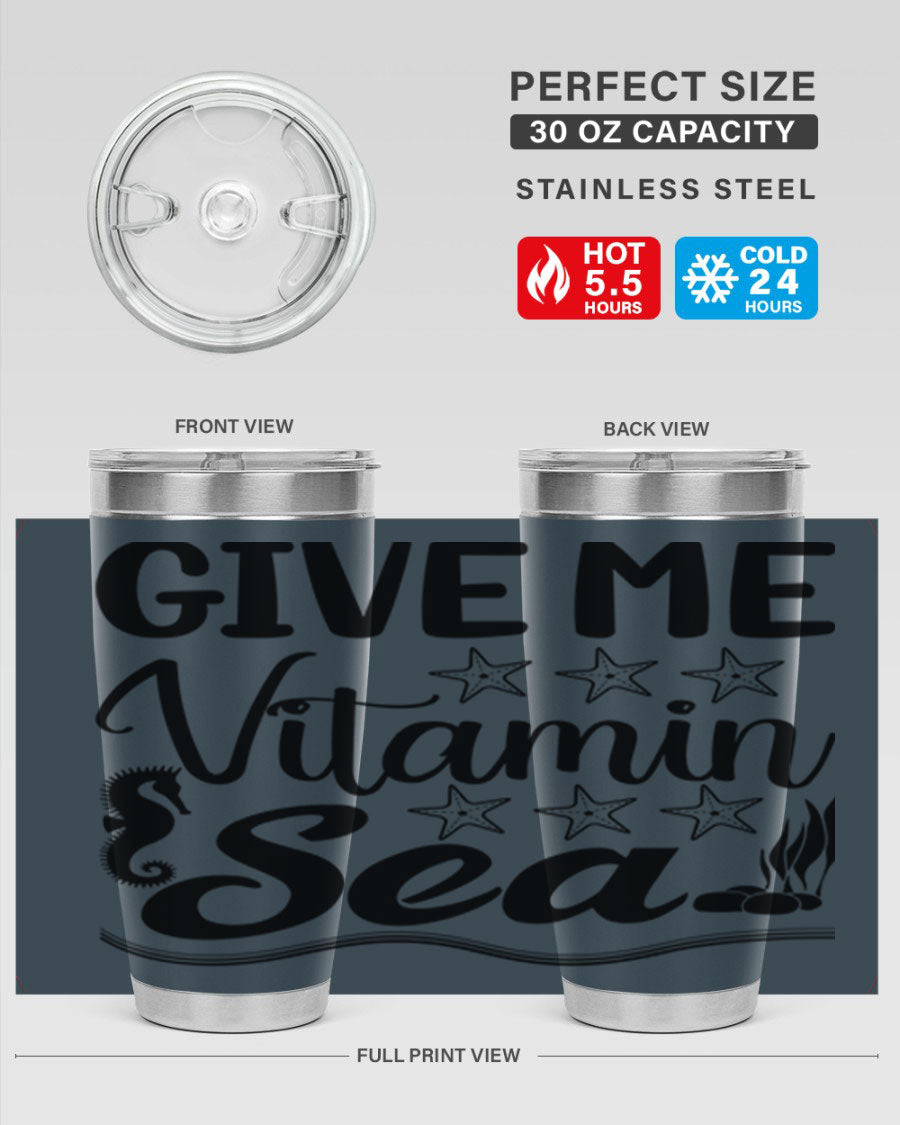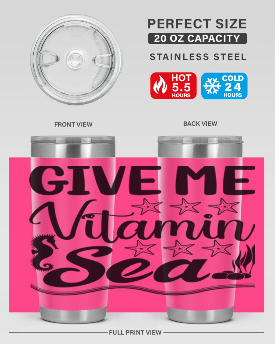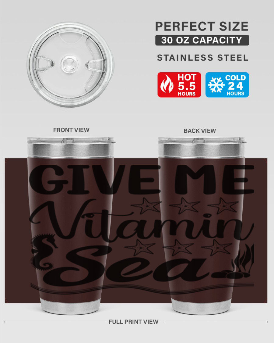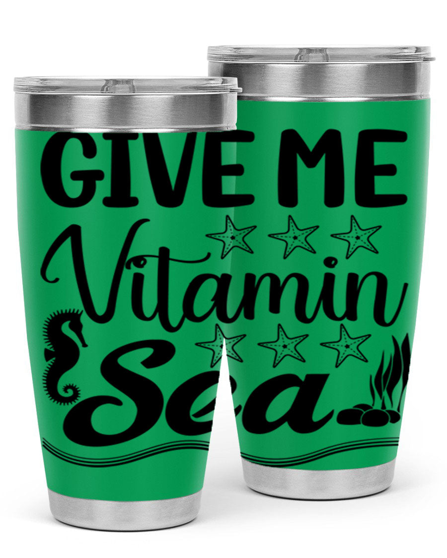 While the tumbler does not include embellishments such as rhinestones, its simple yet elegant design speaks for itself. The Give Me Vitamin Sea tumbler is perfect for anyone looking to add a touch of ocean-inspired flair to their drinkware collection.