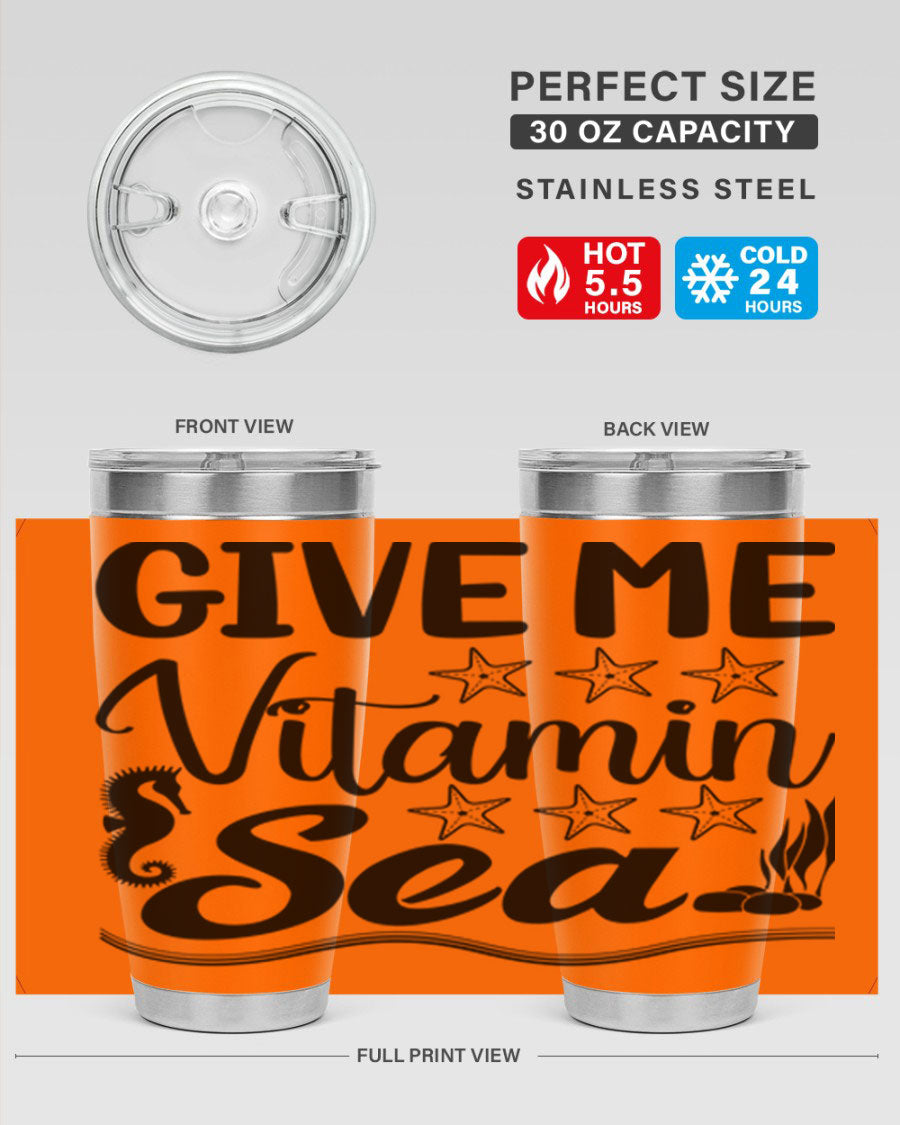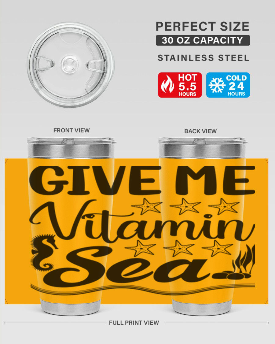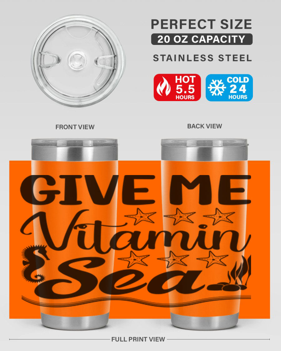 The Give Me Vitamin Sea tumbler is crafted from double wall vacuum stainless steel, ensuring that your drinks maintain their temperature for extended periods. With a copper lining, this tumbler keeps your beverages hot for up to 5.5 hours and cool for an impressive 24 hours. Whether you're sipping on hot coffee during your morning commute or enjoying iced tea on a sunny afternoon, this tumbler has you covered.