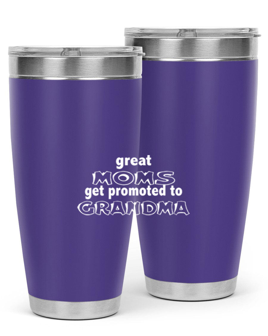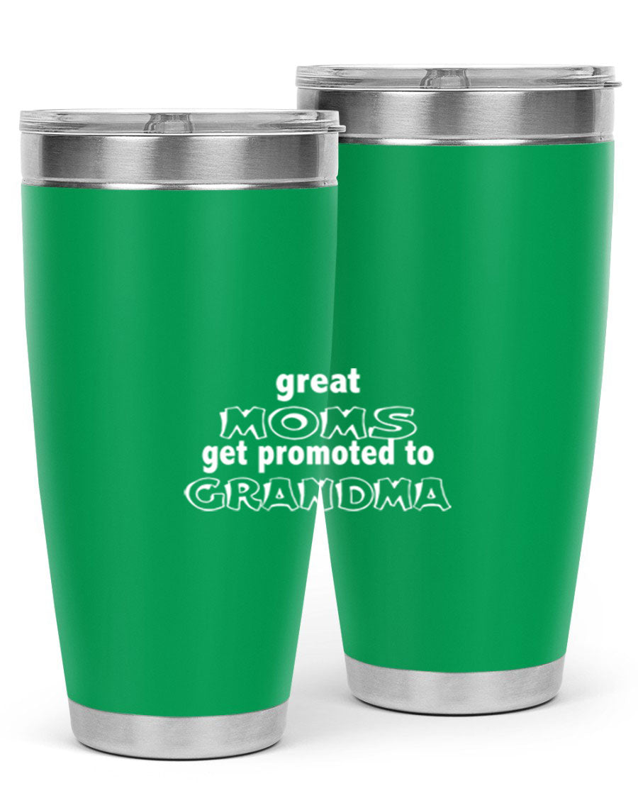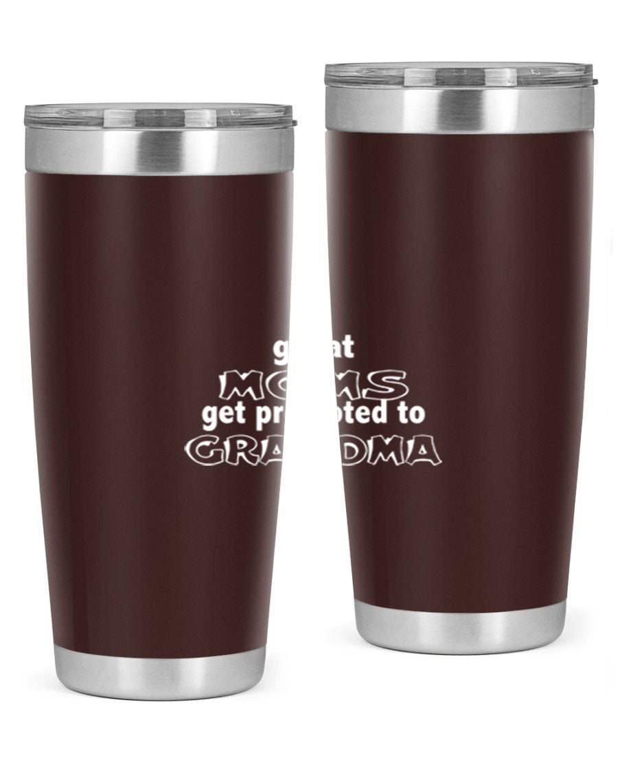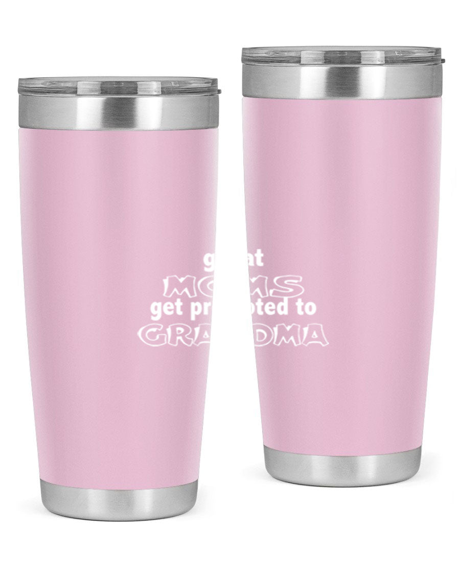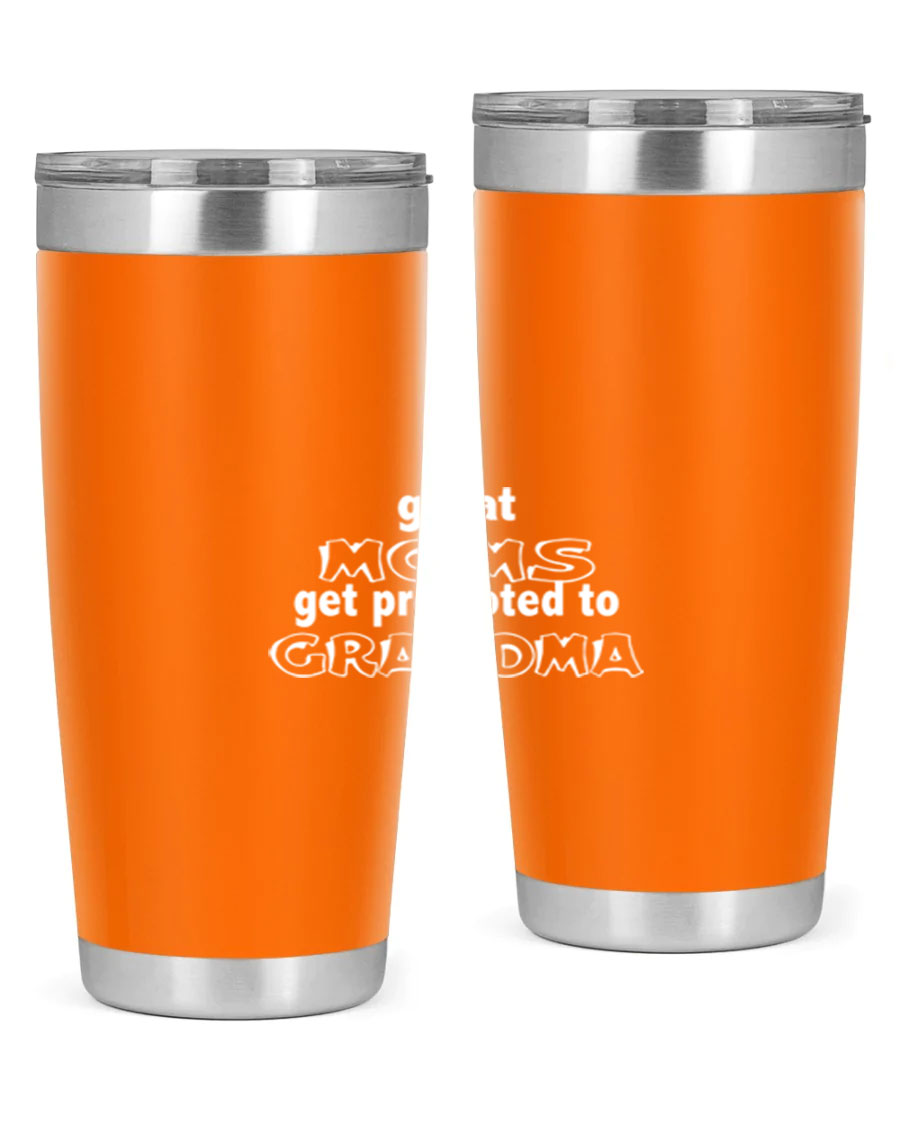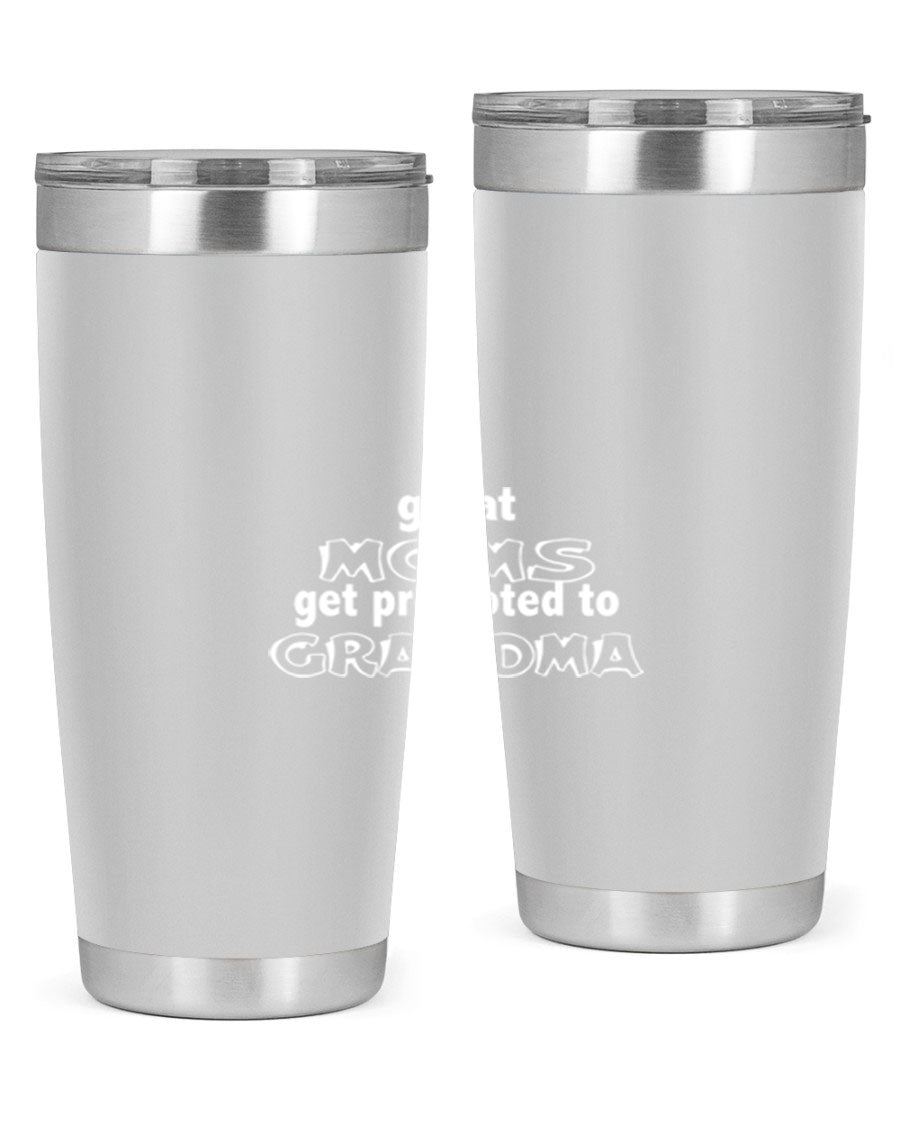 The 'Great Moms Promoted to Grandma' tumbler comes with a press-in, drink-thru lid that makes it easy to enjoy your favorite beverages on the go. Its design fits perfectly in most cup holders, ensuring that you can take it along wherever life takes you. Whether you're running errands, heading to the park, or just relaxing at home, this tumbler is a practical companion.