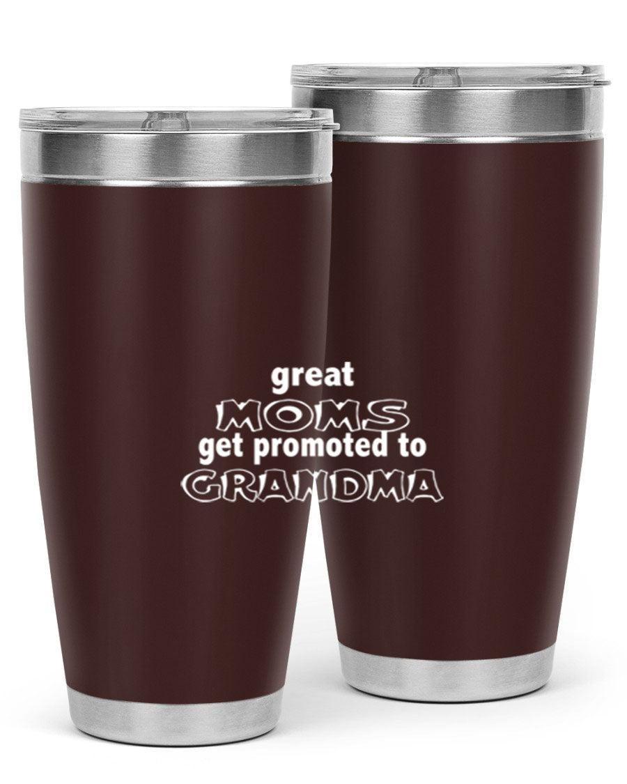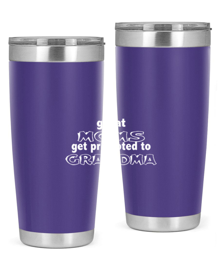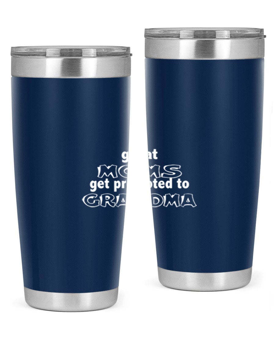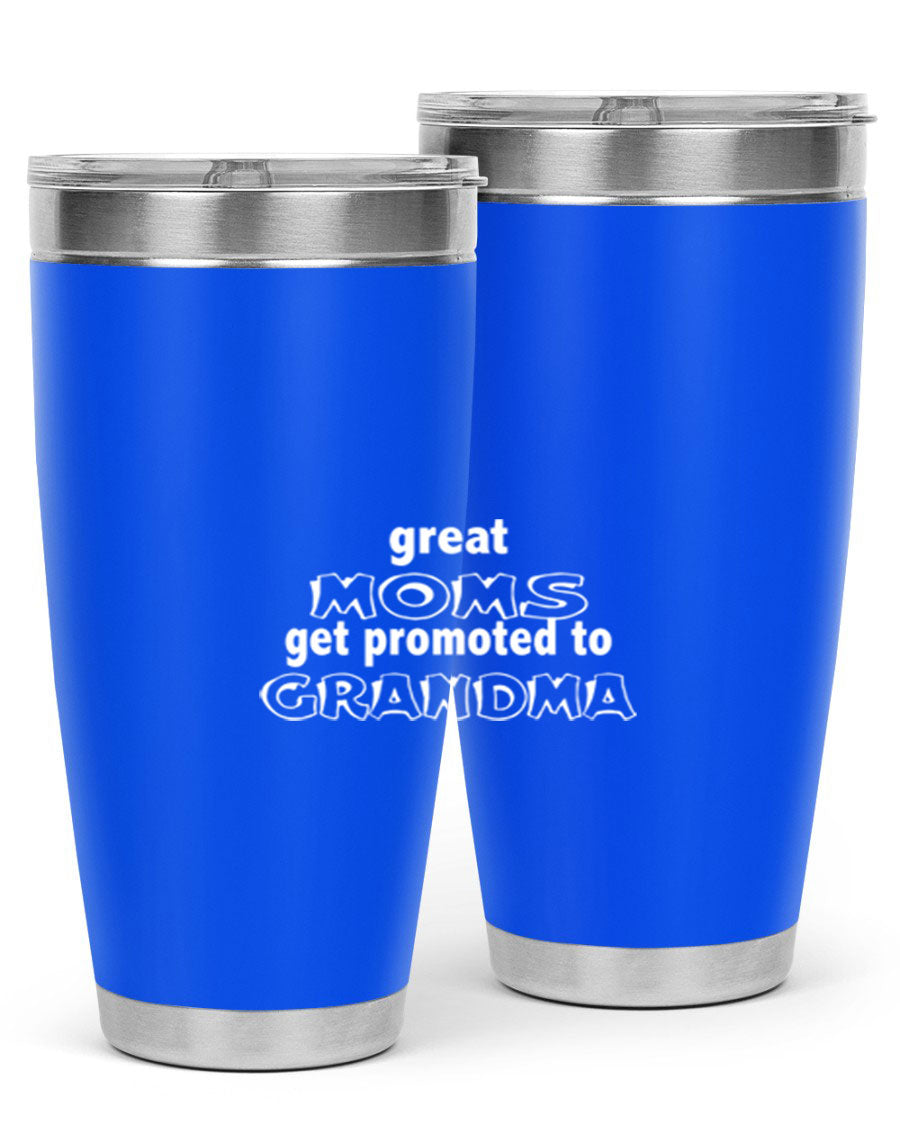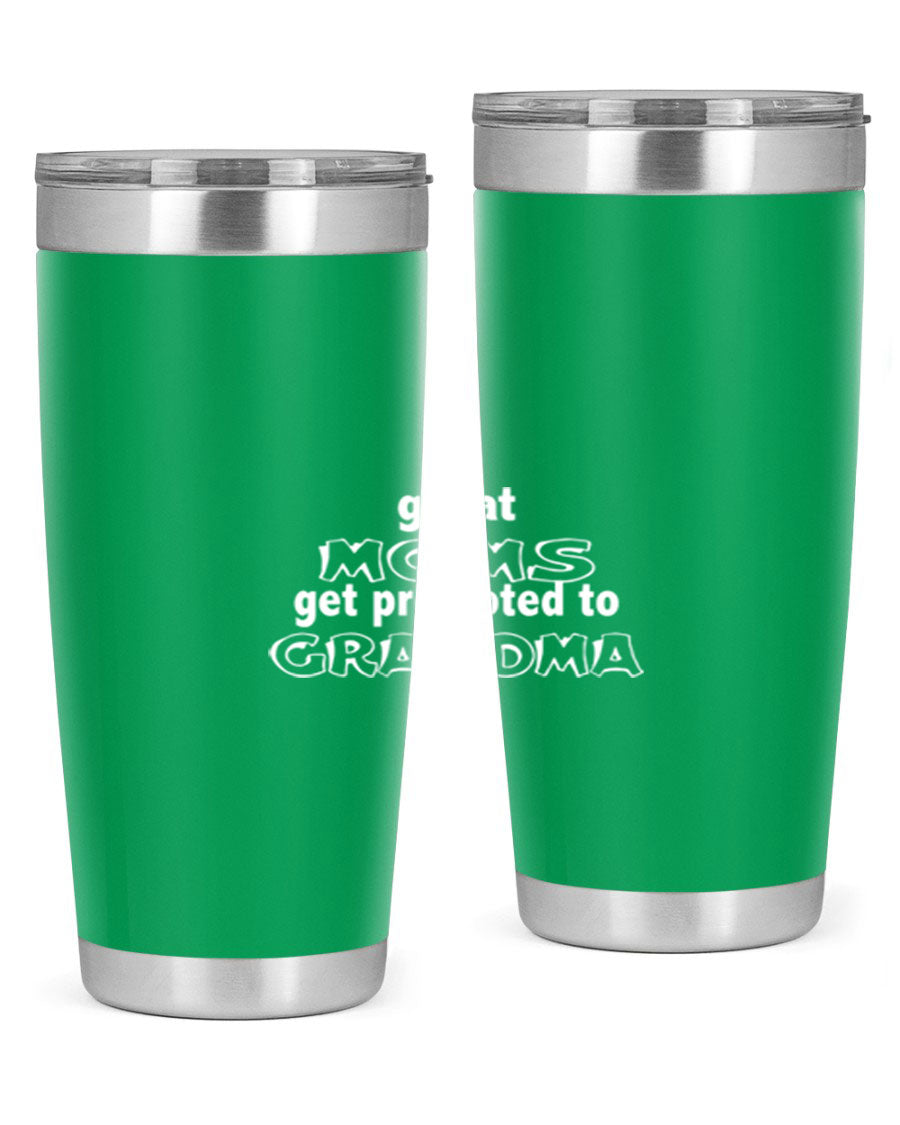 The 'Great Moms Promoted to Grandma' tumbler comes with a press-in, drink-thru lid that makes it easy to enjoy your favorite beverages on the go. Its design fits perfectly in most cup holders, ensuring that you can take it along wherever life takes you. Whether you're running errands, heading to the park, or just relaxing at home, this tumbler is a practical companion.