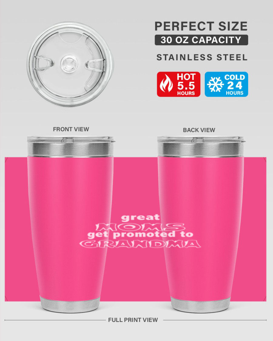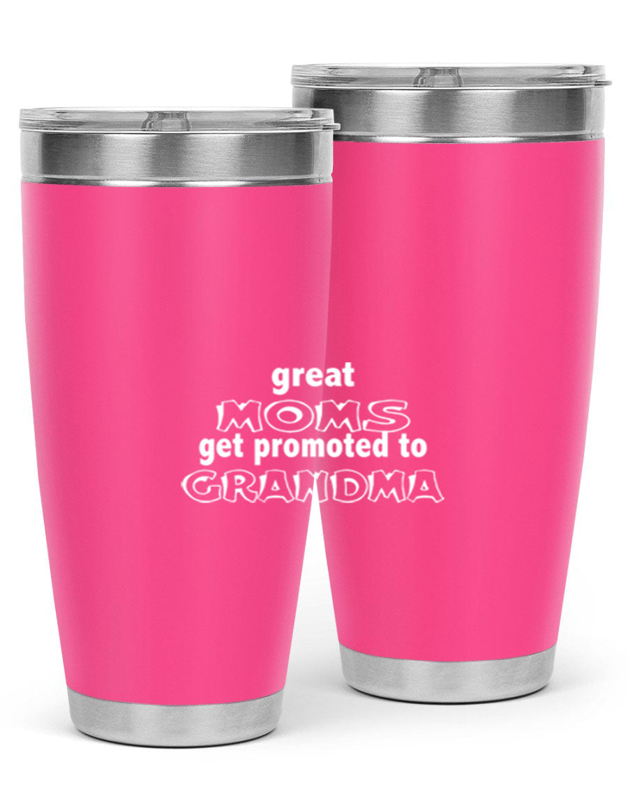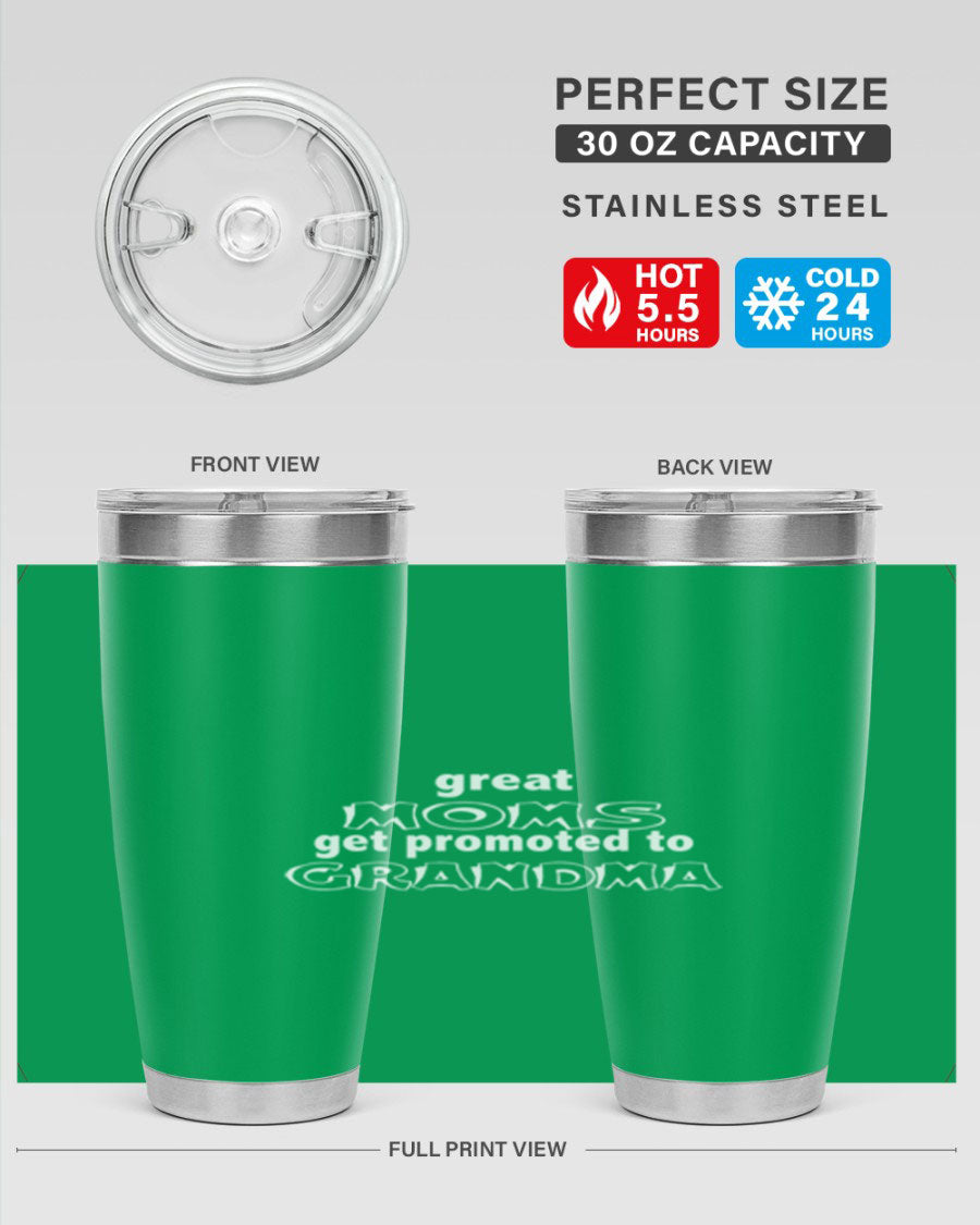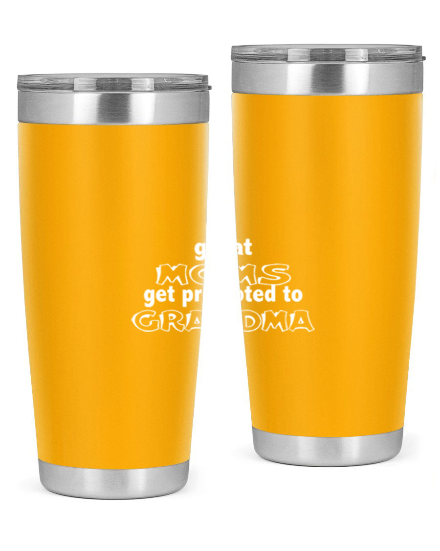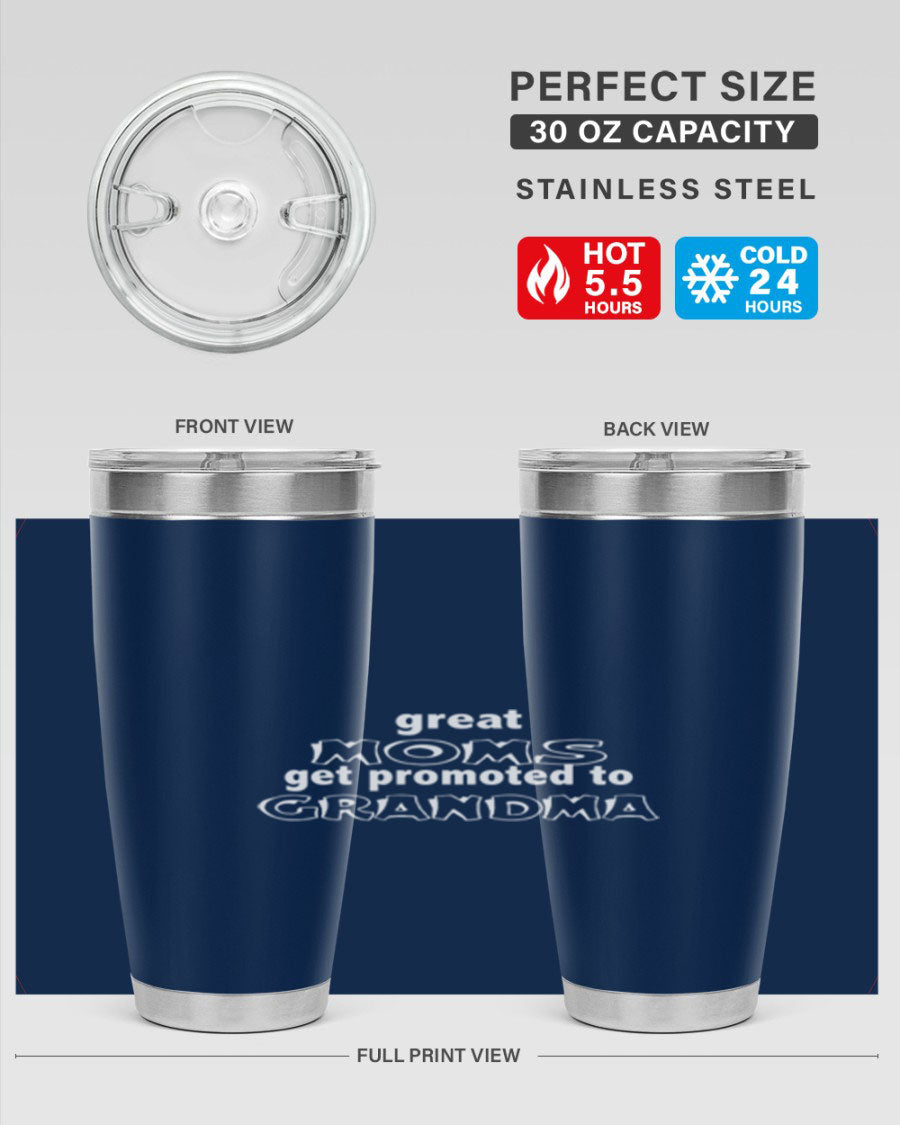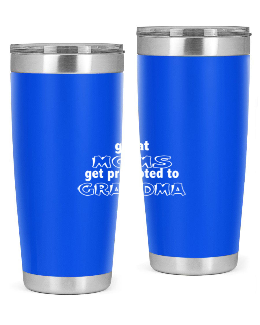 The 'Great Moms Promoted to Grandma' tumbler comes with a press-in, drink-thru lid that makes it easy to enjoy your favorite beverages on the go. Its design fits perfectly in most cup holders, ensuring that you can take it along wherever life takes you. Whether you're running errands, heading to the park, or just relaxing at home, this tumbler is a practical companion.