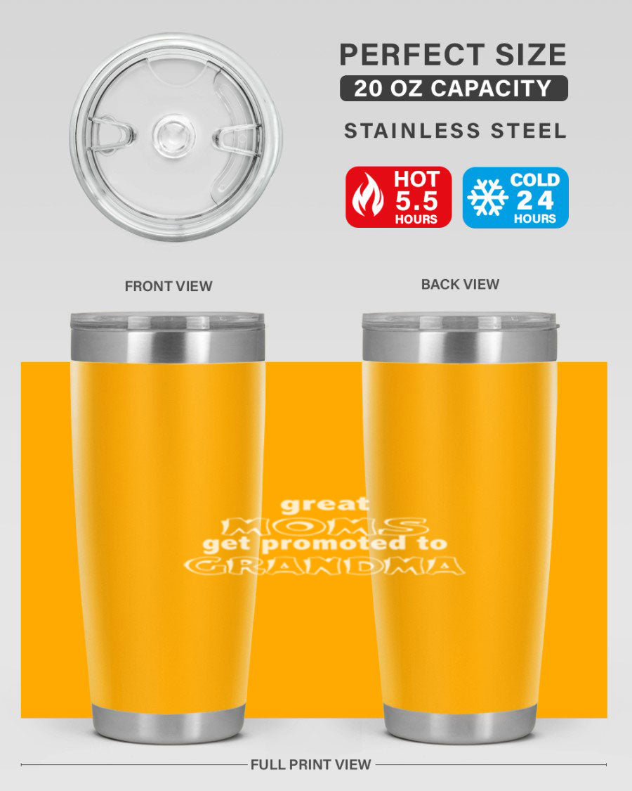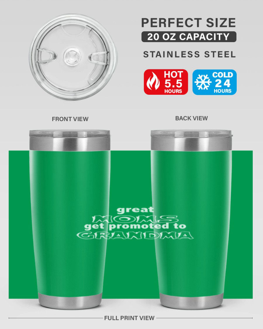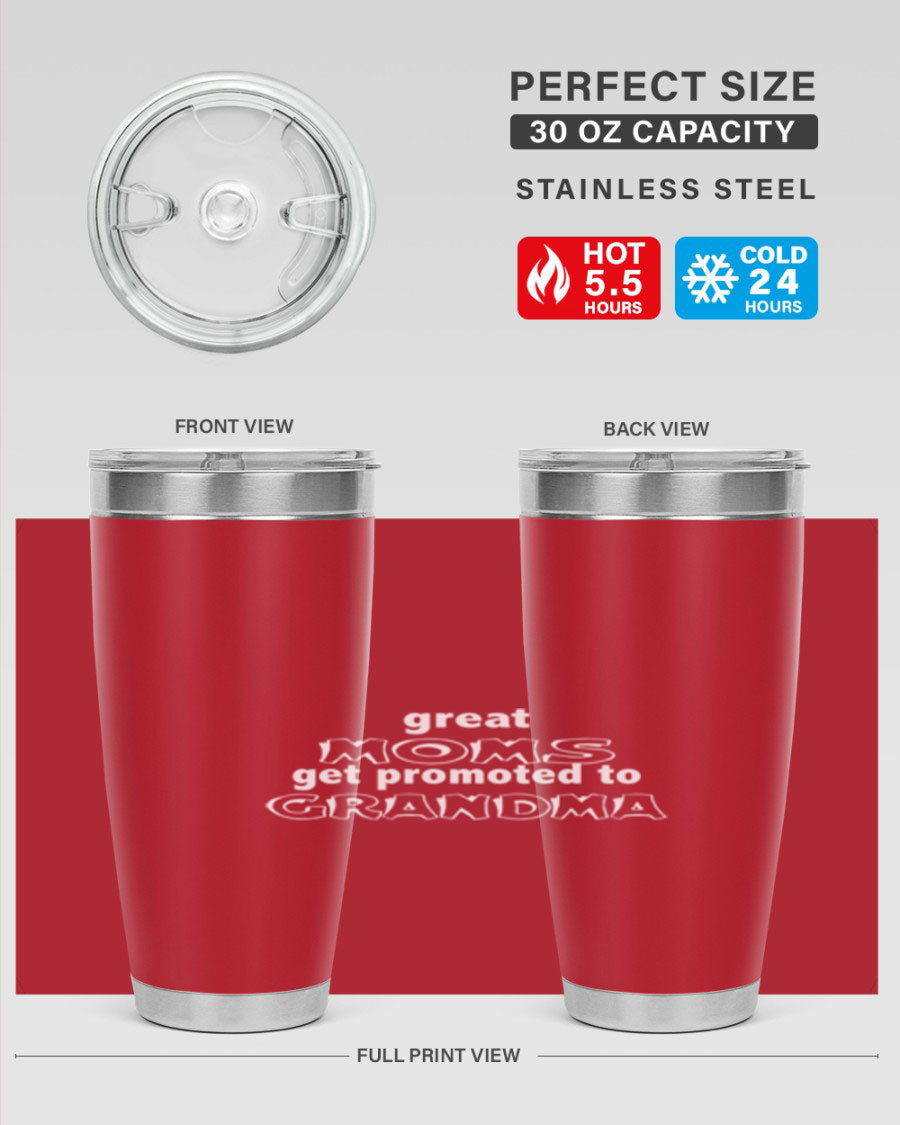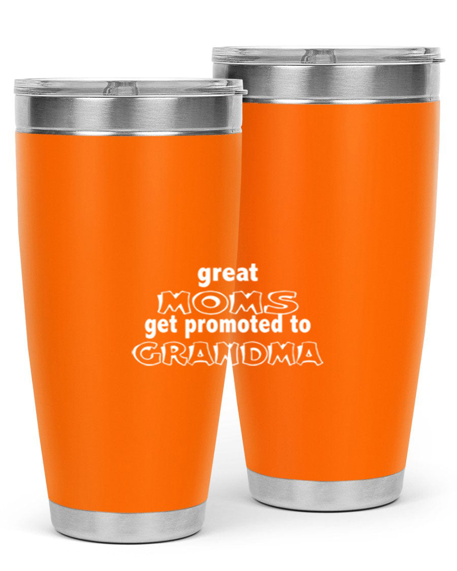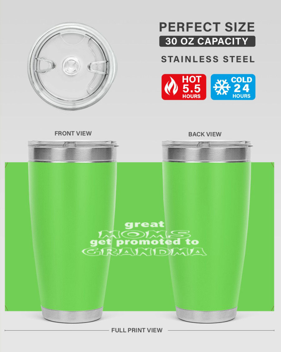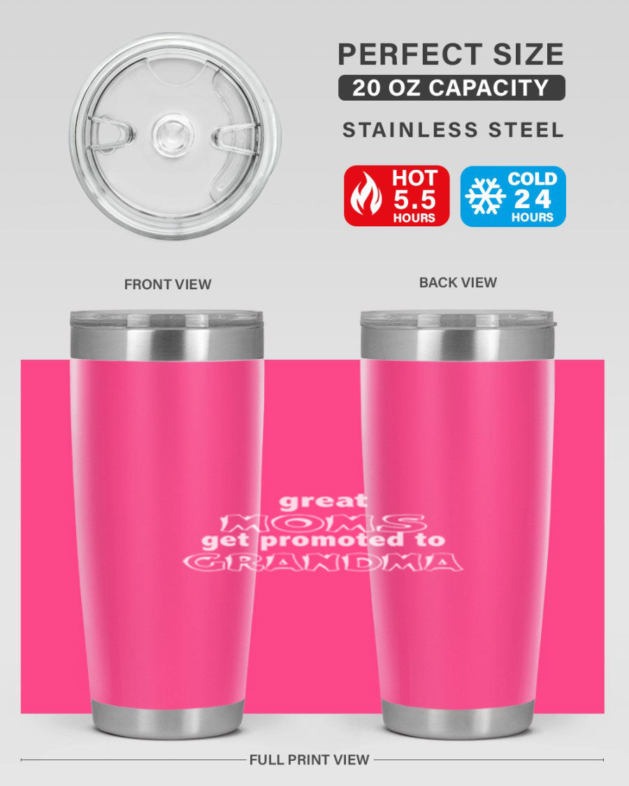 The 'Great Moms Promoted to Grandma' tumbler comes with a press-in, drink-thru lid that makes it easy to enjoy your favorite beverages on the go. Its design fits perfectly in most cup holders, ensuring that you can take it along wherever life takes you. Whether you're running errands, heading to the park, or just relaxing at home, this tumbler is a practical companion.