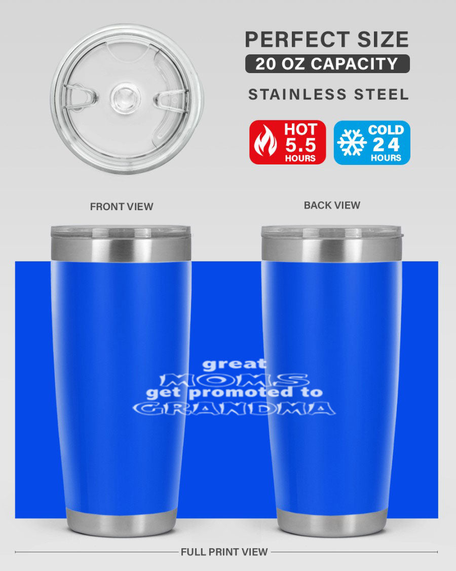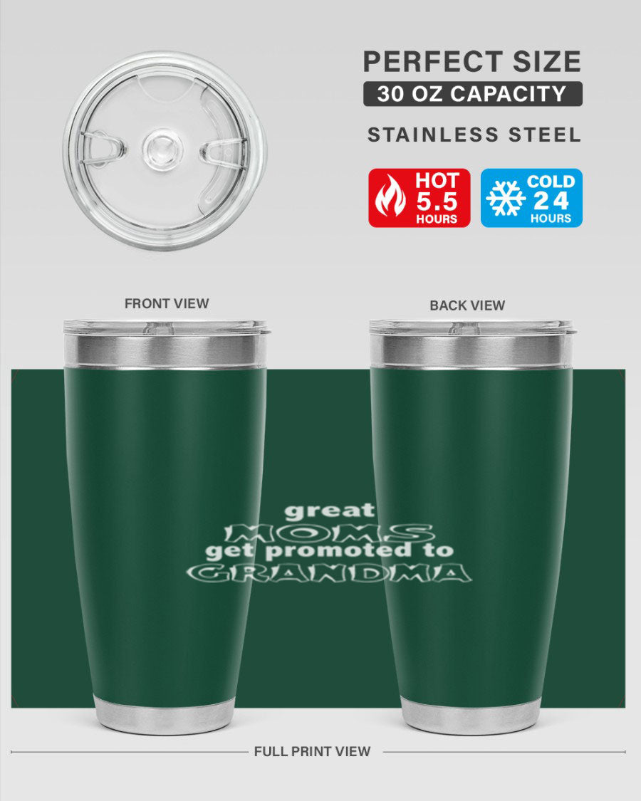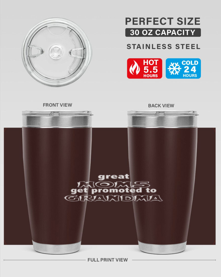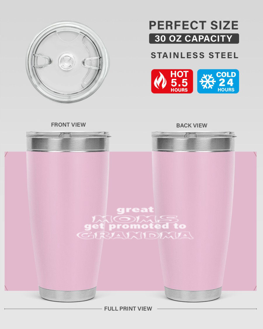 In summary, the 'Great Moms Promoted to Grandma' tumbler is a stylish and functional accessory that every grandma will cherish. With its high-quality construction, temperature retention capabilities, and convenient design, it's the perfect way to enjoy beverages while celebrating the joys of being a grandma.