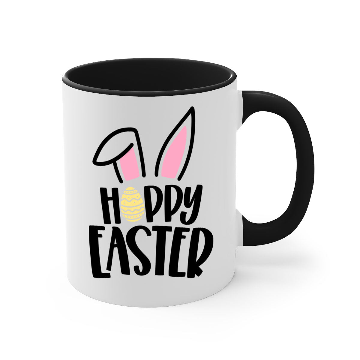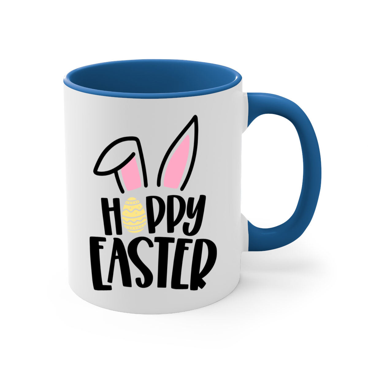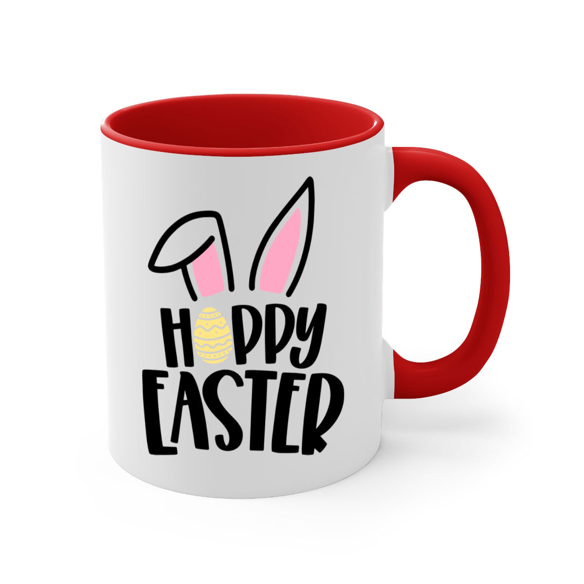 Happy Easter Mug featuring a glossy finish with a colored handle and interior, available in five vibrant colors.