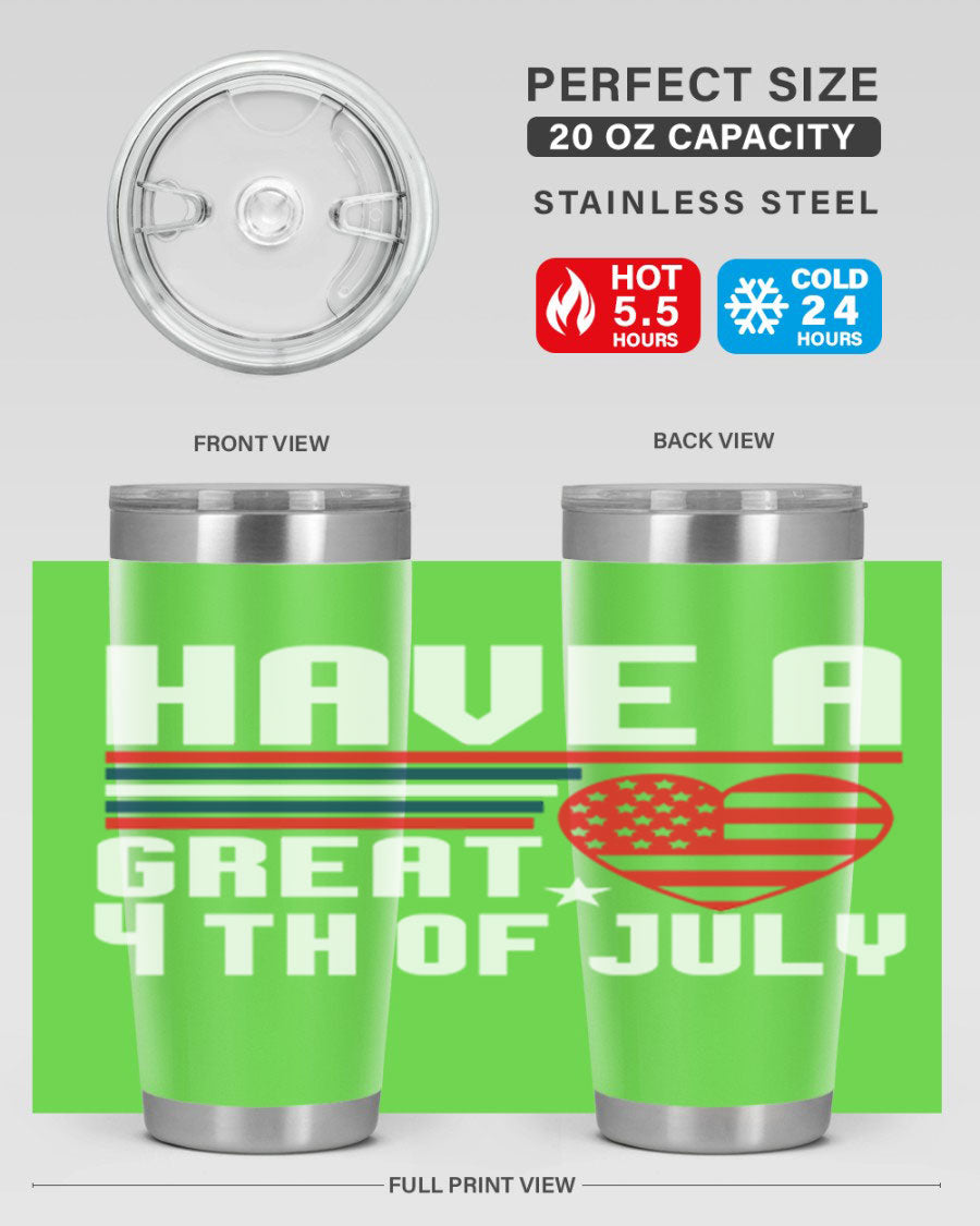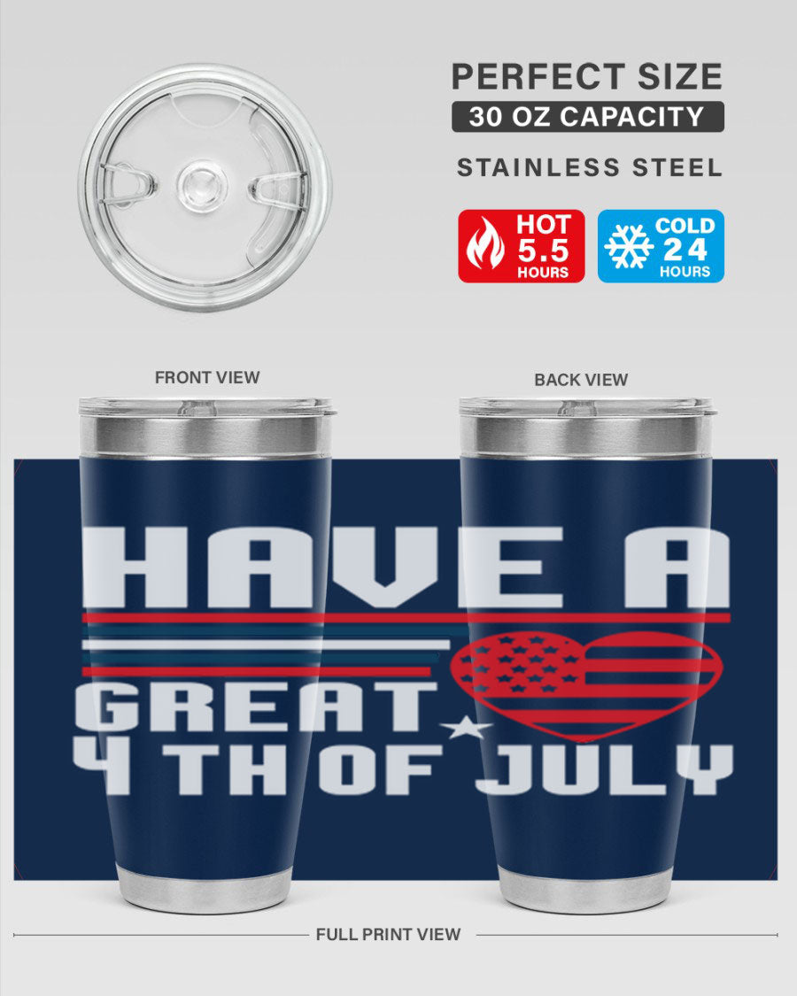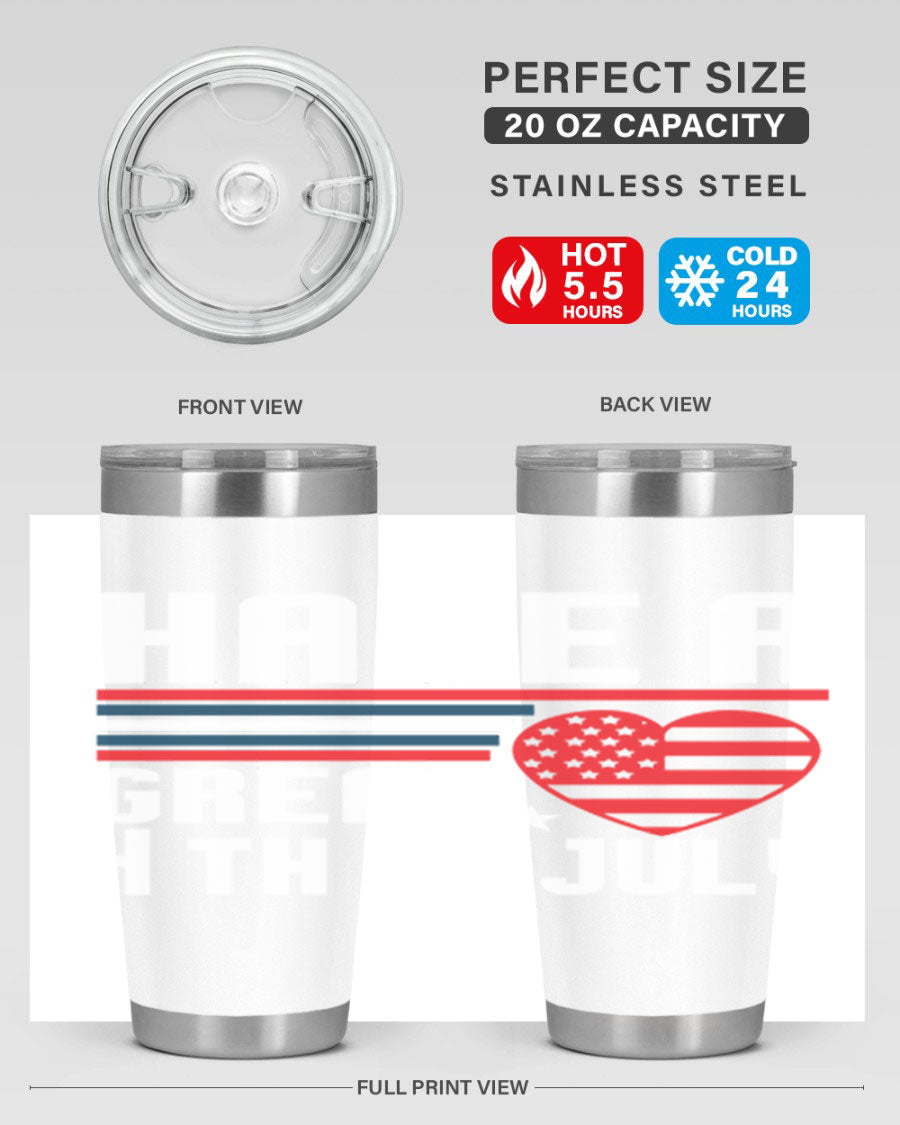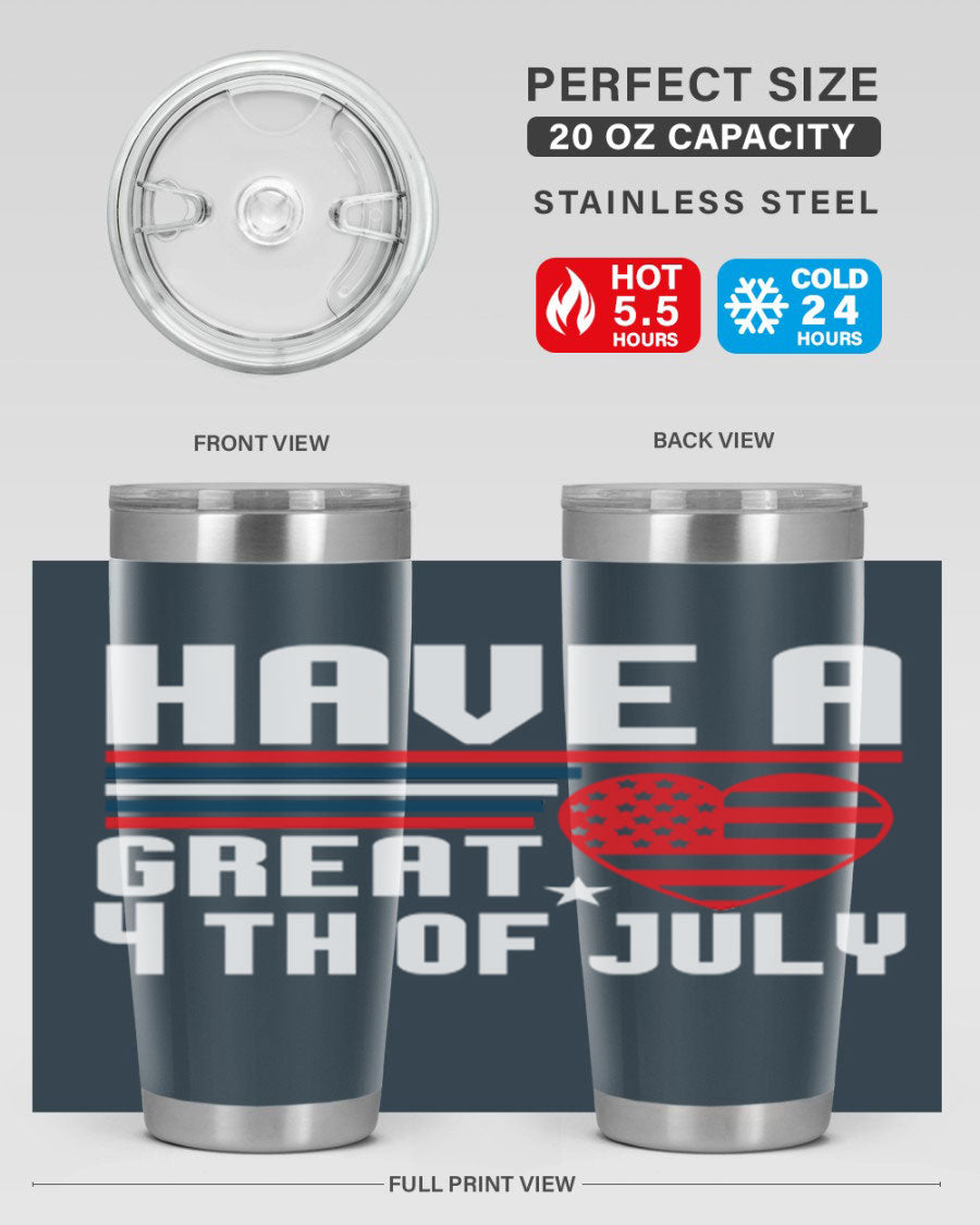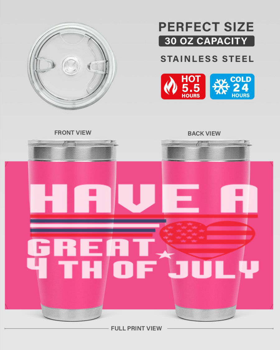 Introducing the Have a Great 4th of July Style 108# Tumblers, your perfect companion for celebrating Independence Day! These tumblers come in two sizes, 20oz and 30oz, designed to keep your favorite beverages at the ideal temperature for hours. Whether you're enjoying a hot cup of coffee during a morning barbecue or sipping iced tea on a sunny afternoon, these tumblers are crafted to meet your needs.