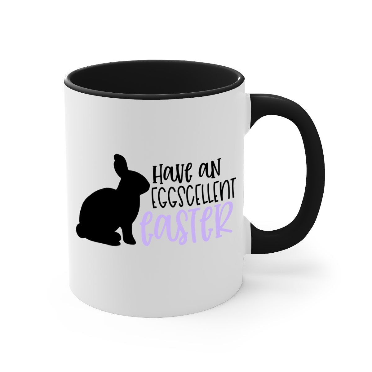 The Have an Eggscellent Easter Mug features a unique two-tone design that adds a festive touch to your kitchenware. With a colored handle and interior, this mug is not only functional but also a beautiful addition to your Easter celebrations. Choose from five vibrant color options to match your personal style or holiday decor.