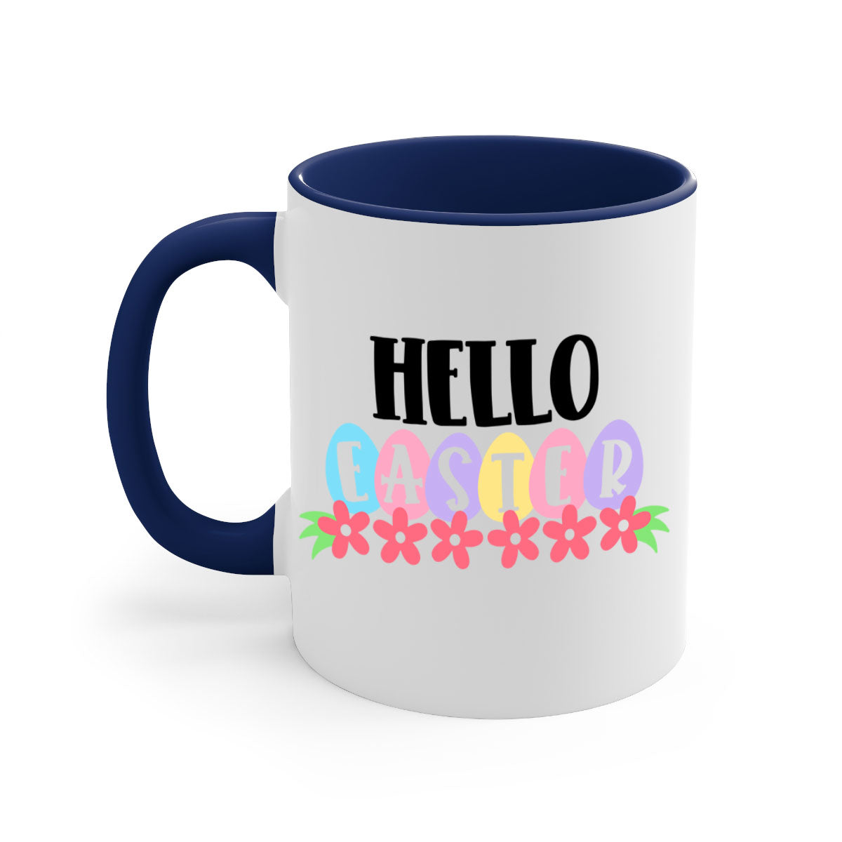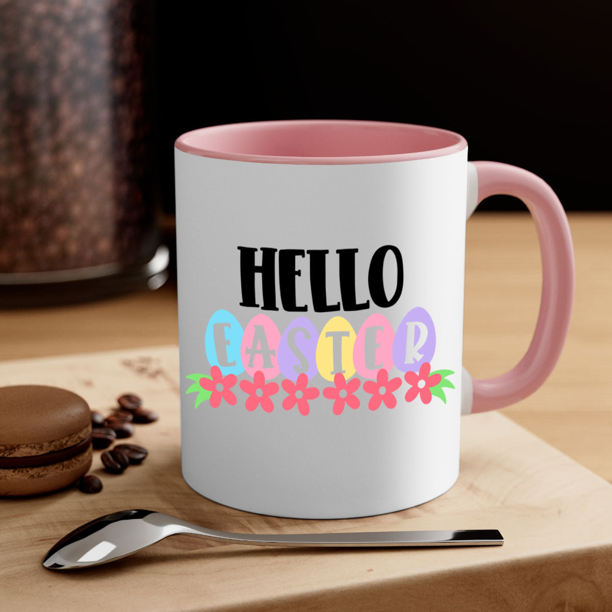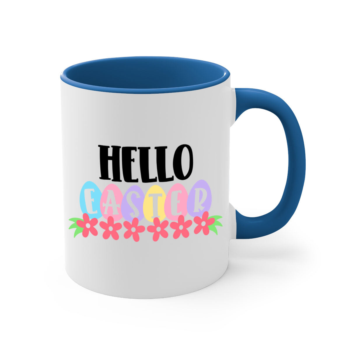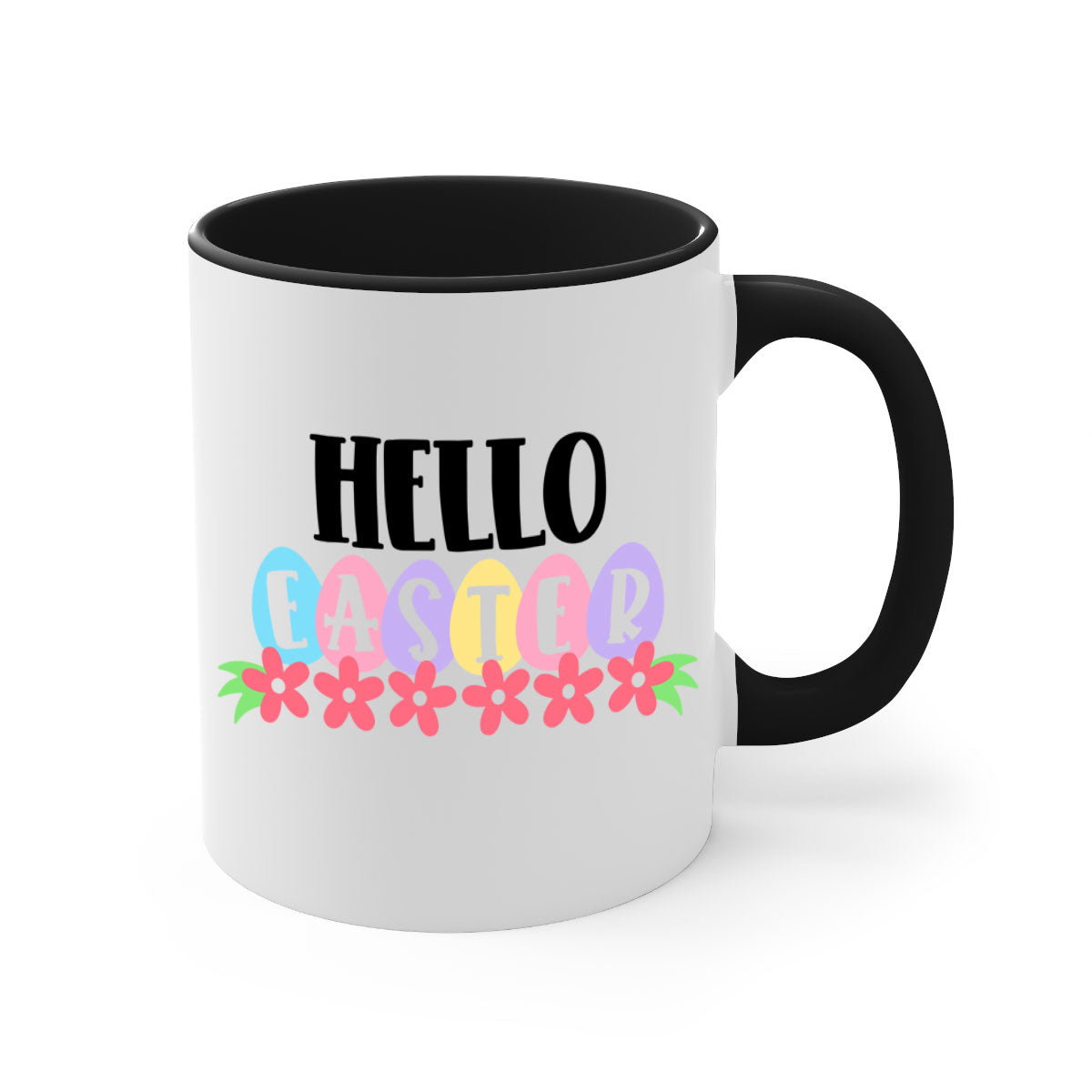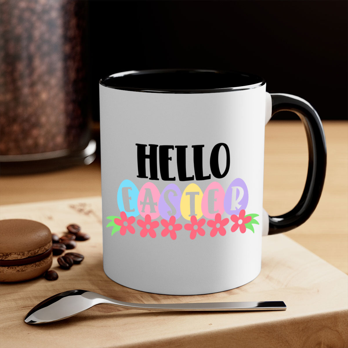 The Hello Easter Mug features a unique two-tone design that is both eye-catching and functional. The colored handle and interior contrast beautifully with the glossy exterior, making it a standout piece in any kitchen or office. Whether you're enjoying a quiet morning at home or sharing a cup of coffee with friends, this mug is designed to impress.