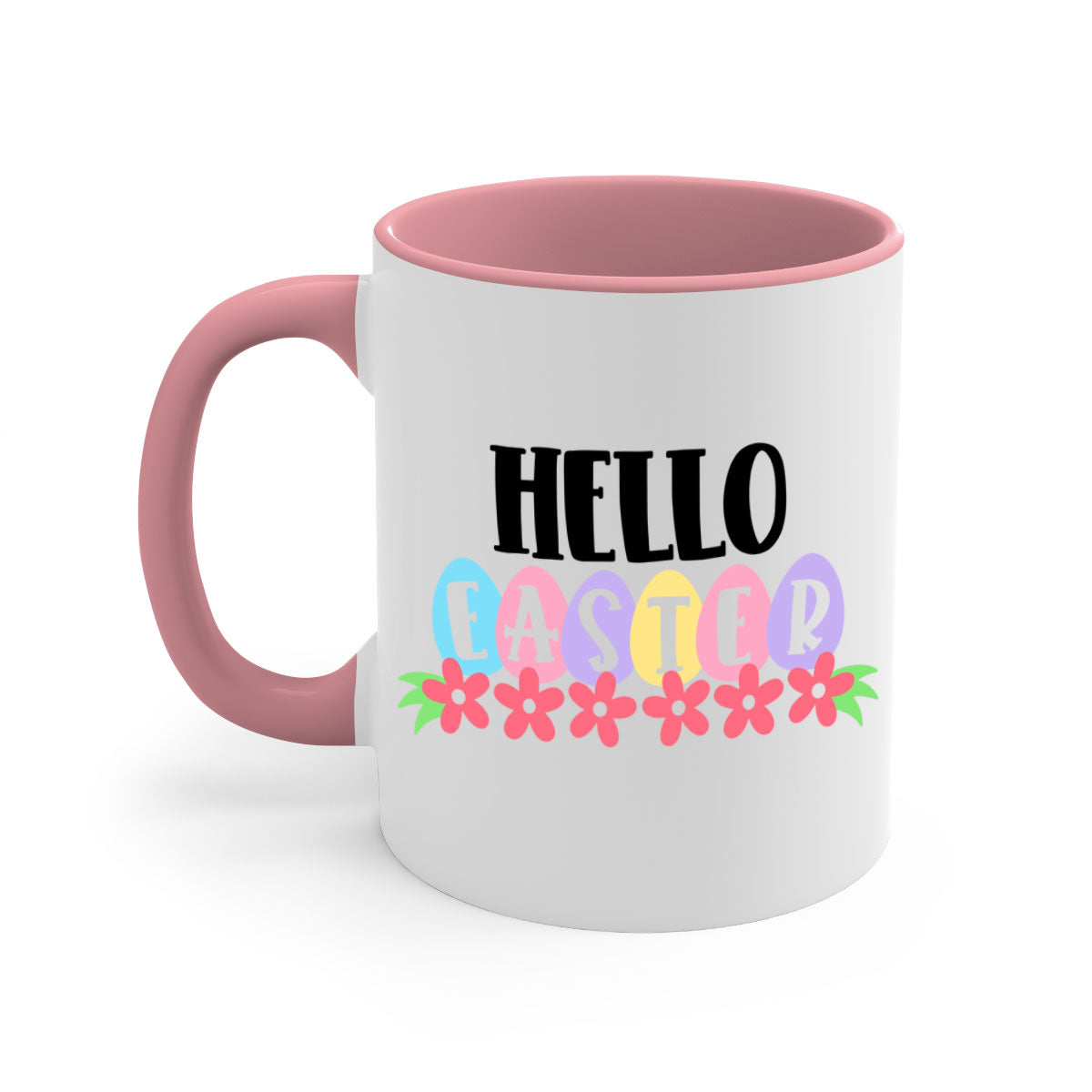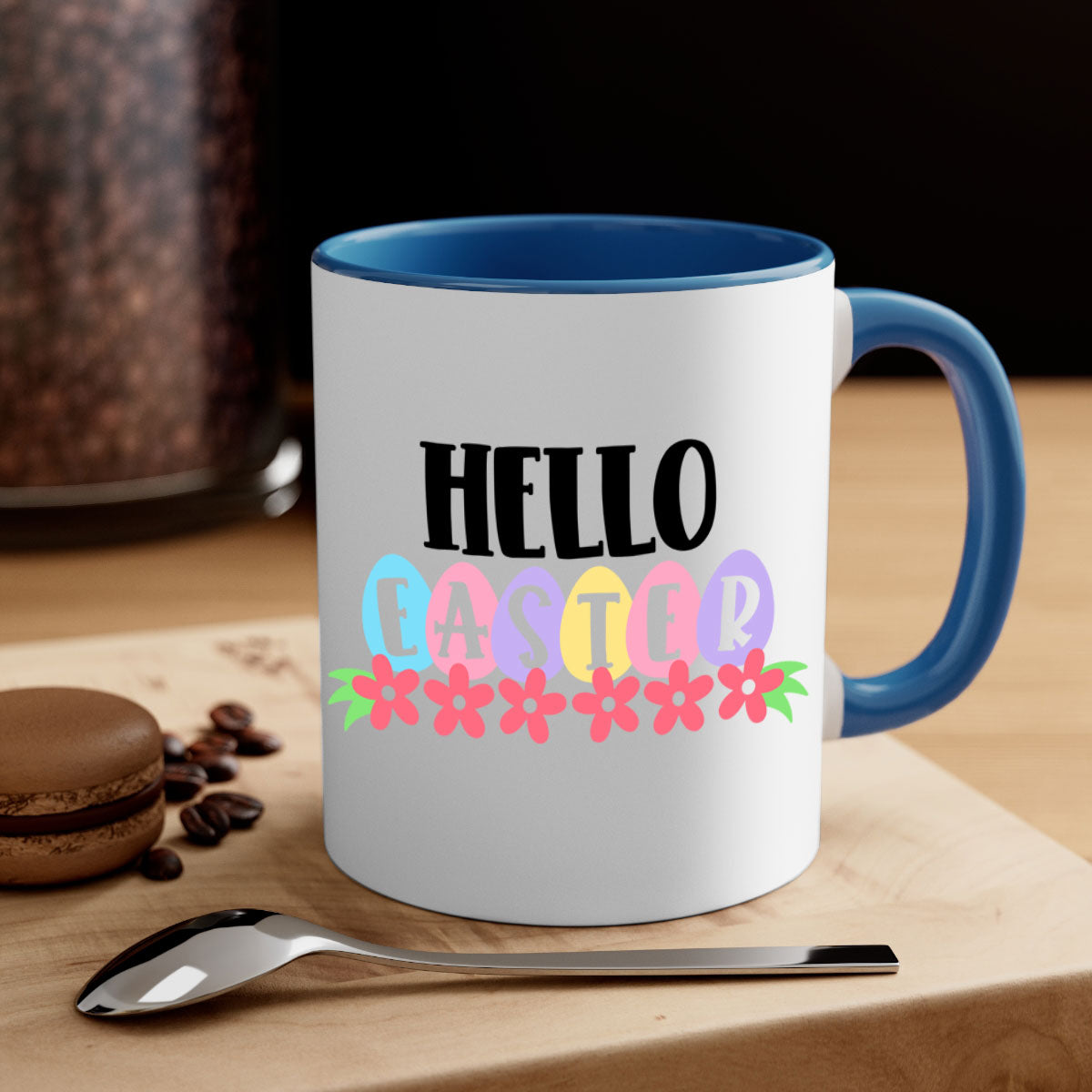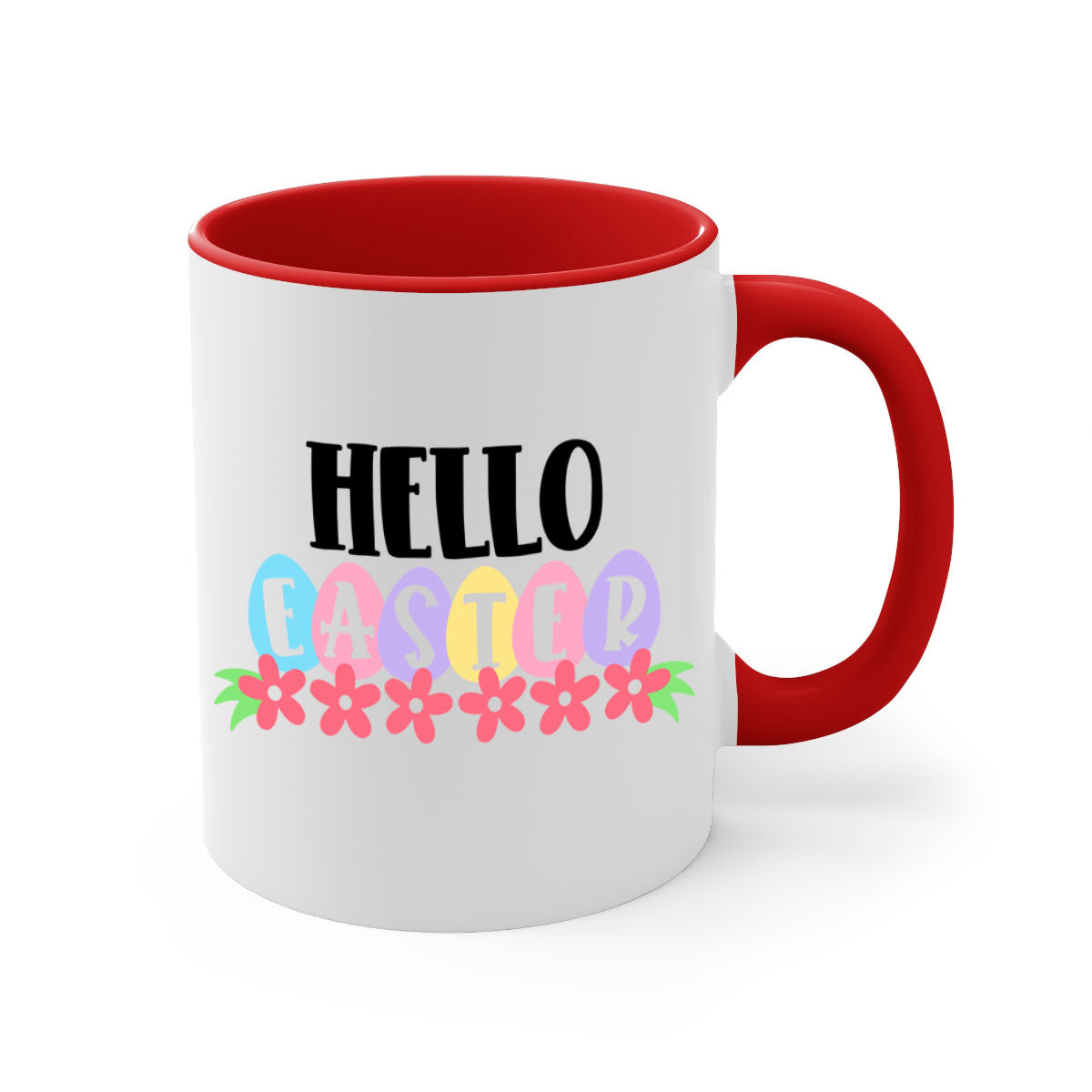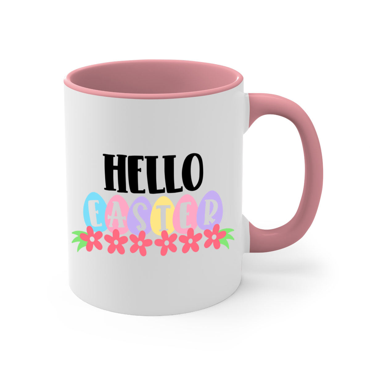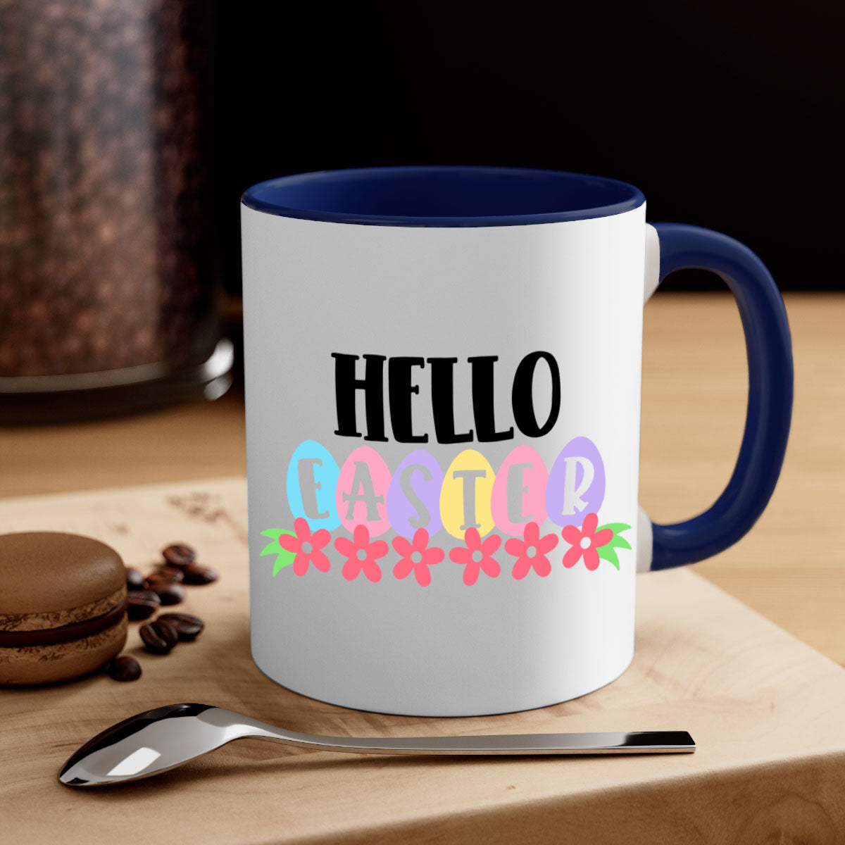The Hello Easter Mug features a unique two-tone design that is both eye-catching and functional. The colored handle and interior contrast beautifully with the glossy exterior, making it a standout piece in any kitchen or office. Whether you're enjoying a quiet morning at home or sharing a cup of coffee with friends, this mug is designed to impress.