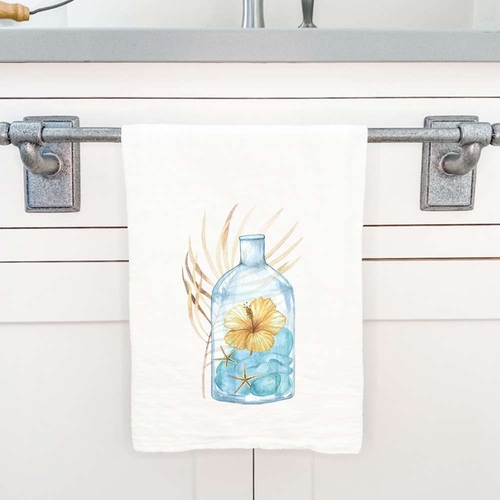 One of the best features of the Hibiscus in a Bottle cotton tea towel is its ease of care. It is machine washable and dryer safe, allowing you to keep it clean and fresh without any hassle. Simply toss it in the washing machine after use, and it will come out looking as good as new.