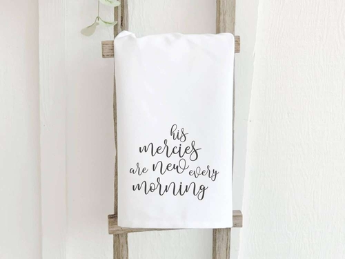 The His Mercies are New Every Morning tea towel makes a thoughtful gift for housewarmings, weddings, or any special occasion. Its charming design and practical use will surely be appreciated by anyone who loves to cook or entertain. Pair it with a set of kitchen utensils or a cookbook for a complete gift package.