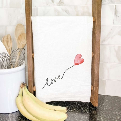 The Love Heart Balloon design is printed using vibrant, water-based inks, which are not only eco-friendly but also ensure that the colors remain bright and vivid even after multiple washes. Each towel is printed in small batches in rural Wisconsin, guaranteeing a unique touch to each piece.