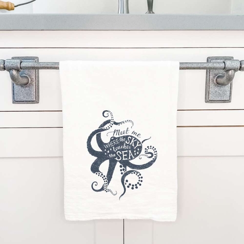 The Meet Me (Octopus) Cotton Tea Towel makes for an excellent gift for housewarmings, weddings, or any special occasion. Its unique design and practical use will delight anyone who loves to cook or entertain. Pair it with other kitchen accessories for a thoughtful gift set that is sure to impress.