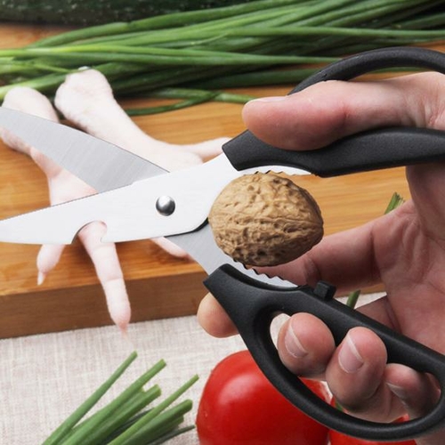 2.In addition to widely used in the kitchen it has more uses, which can be used as pinch the nuts, bottle opener, scales scraper, with micro-serrated edge for slip proof cutting, comfortable easy grip handles. Great grip for both right and left handed.