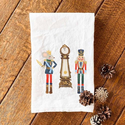 This Nutcracker, Mouse King, and Clock cotton tea towel makes a wonderful gift for anyone who loves cooking, baking, or entertaining. It's perfect for housewarmings, holidays, or as a special treat for yourself. Pair it with other kitchen accessories or a cookbook for a thoughtful gift set that will be appreciated by anyone who enjoys spending time in the kitchen.