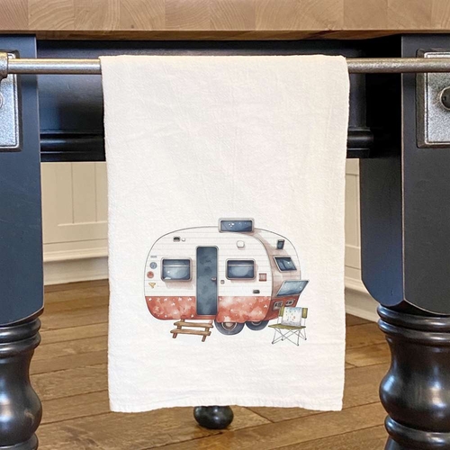 All photos and designs are (C) 2023, American Life Brands. Elevate your kitchen experience with our Patriotic Camper Cotton Tea Towel today!