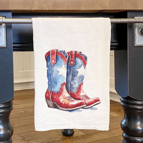 Our Patriotic Cowboy Boots design is printed in small batches using vibrant, water-based inks. This eco-friendly printing method not only ensures that the colors are bright and long-lasting but also makes the towel safe for your family and the environment. The intricate design captures the essence of Americana, making it a perfect gift for holidays, housewarmings, or any occasion that calls for a touch of patriotism.