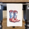 Patriotic Cowboy Boots cotton tea towel featuring vibrant colors and a unique design, perfect for kitchen use.