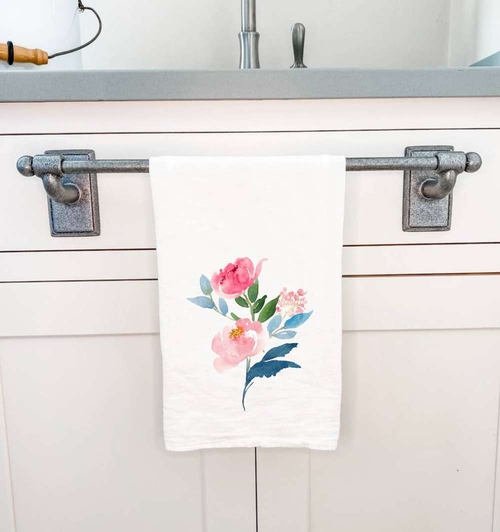 Maintaining the beauty of your Peony Stems tea towel is simple. It is machine washable and dryer safe, allowing for easy cleaning and quick drying. You can use it repeatedly without worrying about fading or wear, thanks to the permanent, water-based inks used in the printing process. This makes it an ideal choice for busy households.