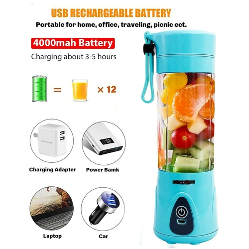 Rechargeable and Portable: The USB juicer cup comes equipped with a built-in 4000 mAh rechargeable battery (unlike those cheap blenders selling for $12-20) that can be easily charged by power bank, laptop, computer, mobile phones or other USB devices. 3 hours charge for about 12 times use easily.