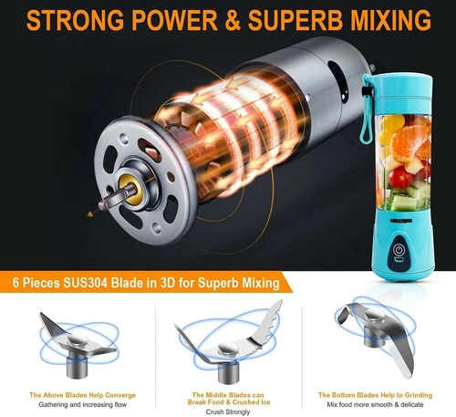 Upgrade 6 Blades Mixing: 6 TITANIUM Blades portable blender has stronger power than traditional 4 Mini Blades, which can effortlessly make juices, vegetables into amazing smoothies, leave no chunks of fruit and ice, easy to go.