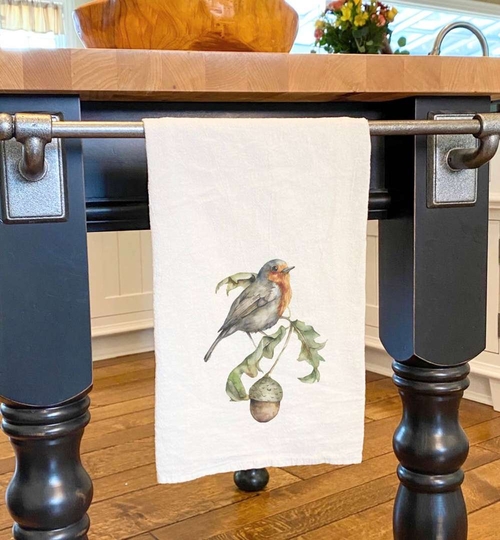 All photos and designs are (C) 2023, American Life Brands. Elevate your kitchen experience with the Robin and Acorn Cotton Tea Towel today!