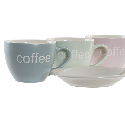 Set of 6 Cups with Plate DKD Home Decor Blue Green Pink Stoneware 150 ml 10 x 7,5 x 7,5 cm at the best price.