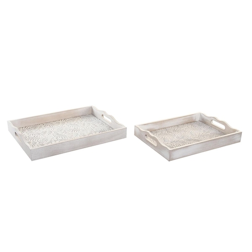 Set of trays DKD Home Decor White Brown MDF Wood 39 x 30 x 5 cm (2 Units) at the best price.