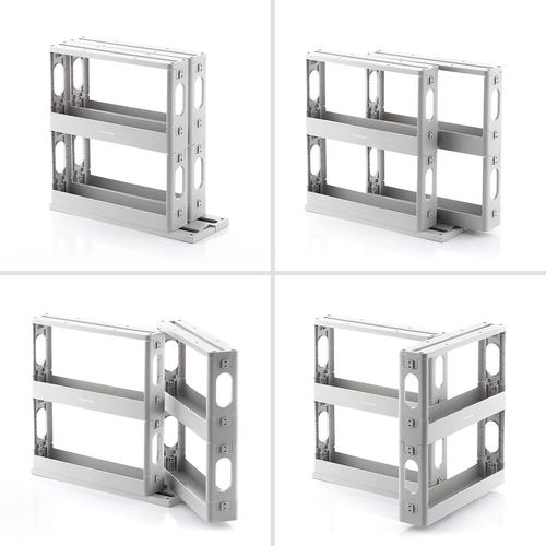 shelves with 2 heights and a 90º angle rotation which makes it easier to access