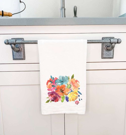Introducing our Summer Flower Bouquet Cotton Tea Towel, a delightful addition to your kitchen that combines functionality with artistic flair. This tea towel is not just a kitchen accessory; it's a piece of art that brings the beauty of summer flowers into your home. Crafted from 100% absorbent cotton, this towel is designed to handle all your drying needs while adding a touch of elegance to your kitchen decor.