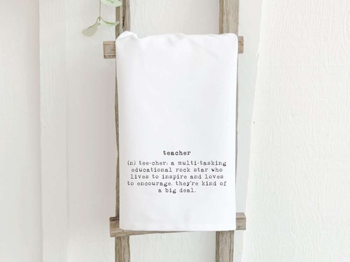 Choosing our Teacher Definition Cotton Tea Towel means opting for quality, sustainability, and style. Each towel is printed in rural Wisconsin, supporting local artisans and small-batch production. By purchasing this product, you are not only enhancing your kitchen but also contributing to a more sustainable and eco-friendly future.