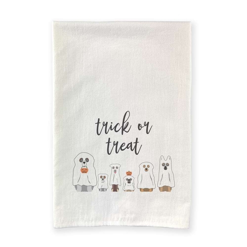 Introducing the Trick or Treat Dogs Cotton Tea Towel, a delightful addition to any dog lover's kitchen. Made in the USA from 100% cotton, this tea towel is not only functional but also a charming decorative piece. Its vibrant prints and quality craftsmanship make it a must-have for anyone who adores their furry friends.