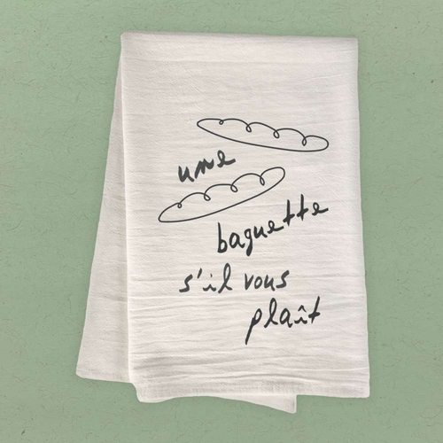 All photos and designs are (C) 2024, American Life Brands. Invest in the Une Baguette cotton tea towel today and elevate your kitchen experience with a product that is as beautiful as it is functional.