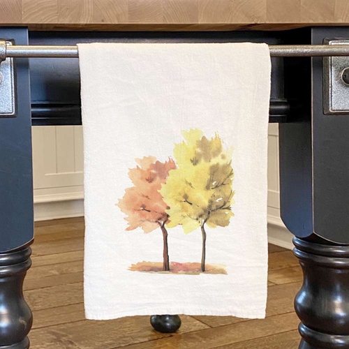 Our Watercolor Fall Trees tea towel is designed for convenience. It is machine washable and dryer safe, allowing for easy cleaning and maintenance. Simply toss it in the wash after use, and it will come out looking fresh and vibrant, ready for your next culinary adventure. The permanent, water-based inks used in the printing process ensure that the colors remain bright and do not fade over time, even after multiple washes.