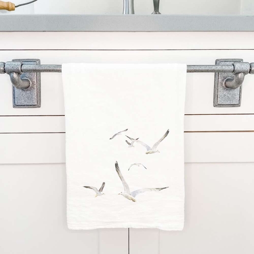 The stunning watercolor design features flying seagulls, bringing a sense of tranquility and nature into your home. Each towel is printed in small batches using vibrant, water-based inks, ensuring that every piece is unique and of the highest quality. The artistic representation of seagulls in flight is not only visually appealing but also serves as a conversation starter during gatherings.