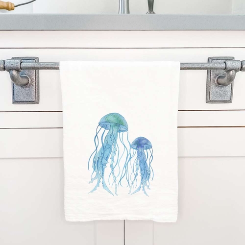Crafted from premium 100% cotton, our Watercolor Jellyfish tea towel is designed to be highly absorbent, making it perfect for drying dishes, wiping spills, or even as a decorative piece. The flour sack style ensures that it is lightweight yet durable, allowing for easy handling and storage. The hemmed edges provide added strength, ensuring that this towel will withstand the test of time and frequent use.